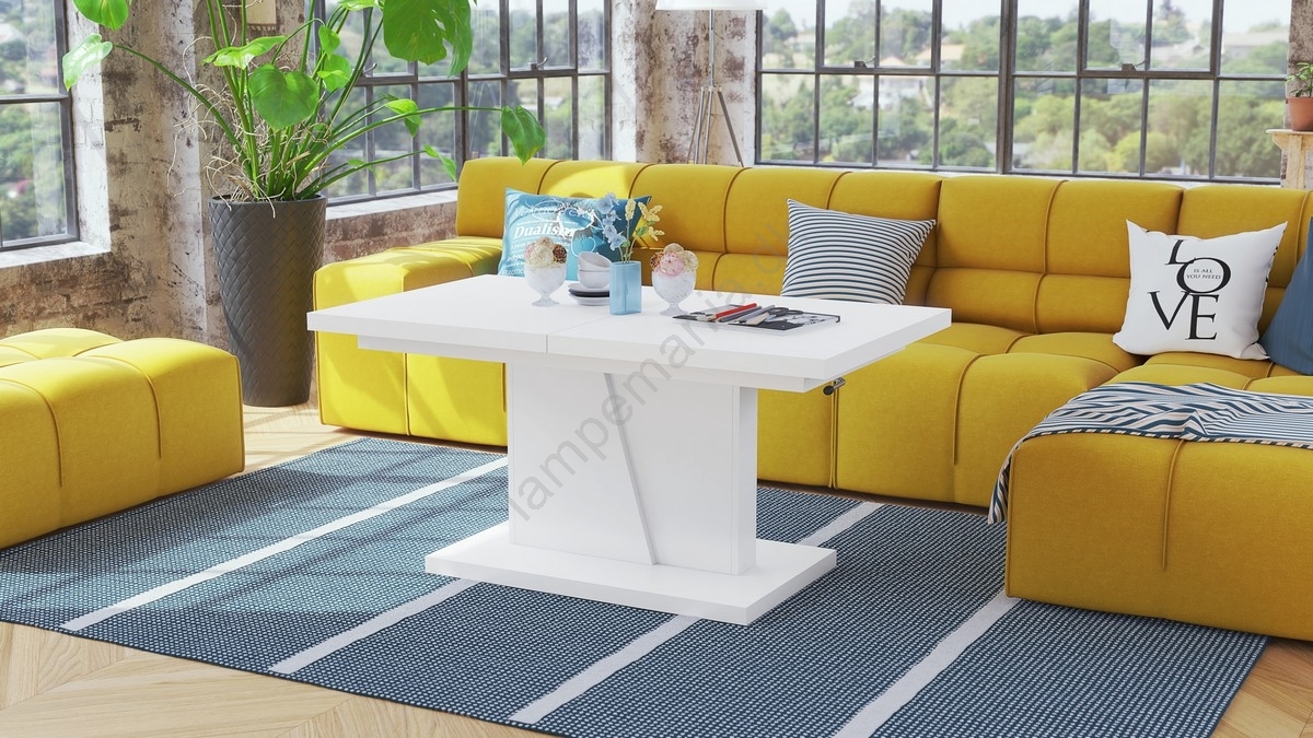 • Udtrækkeligt sofabord/spisebord med løftbar bordplade NINO hvid