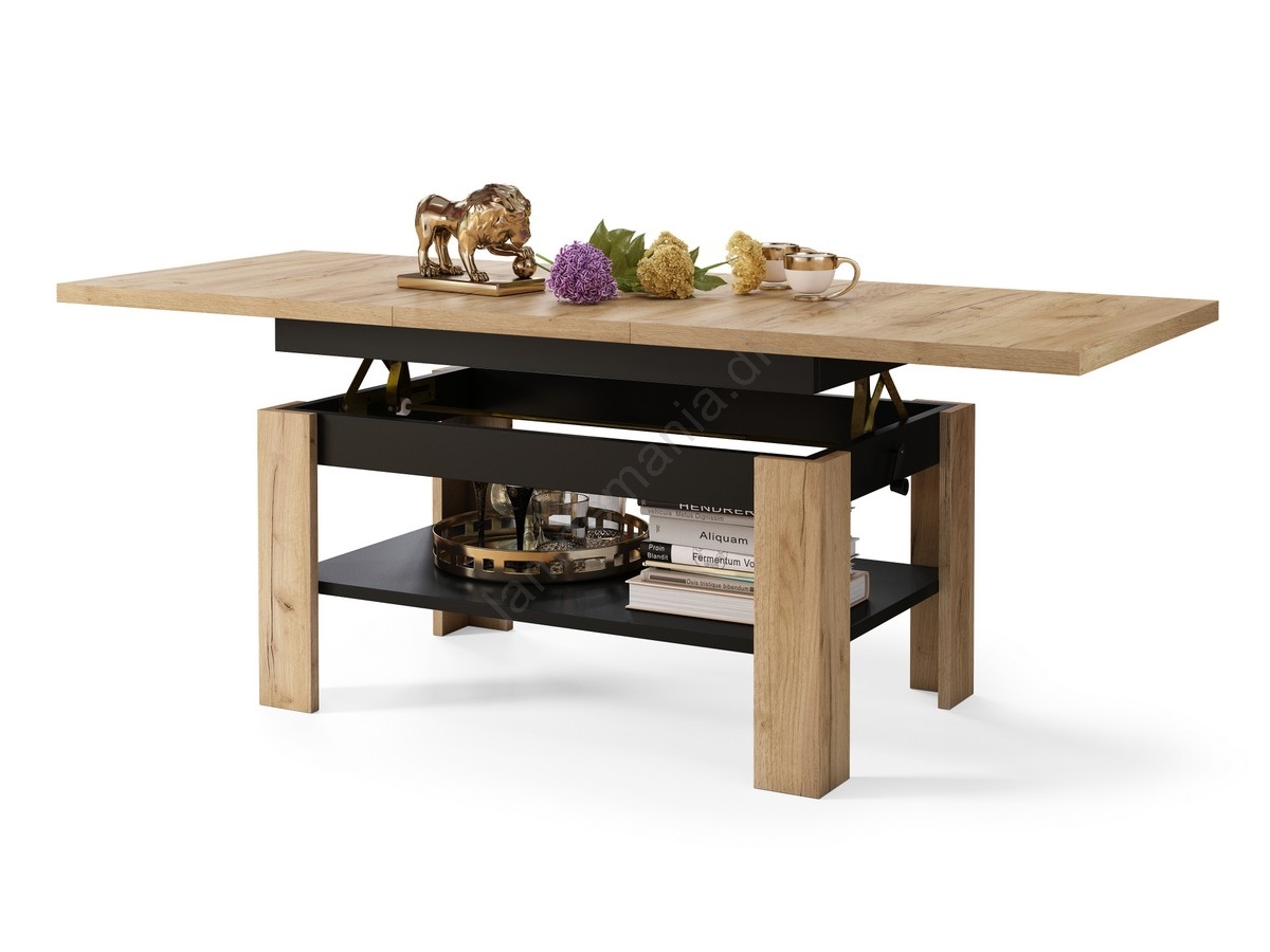 Udtrækkeligt sofabord/spisebord med løftbar bordplade ROY craft-eg/sort