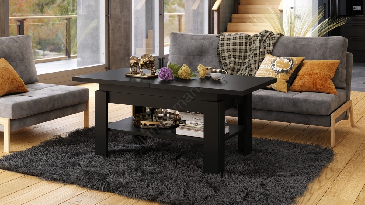 • Udtrækkeligt sofabord/spisebord med løftbar bordplade ROY sort