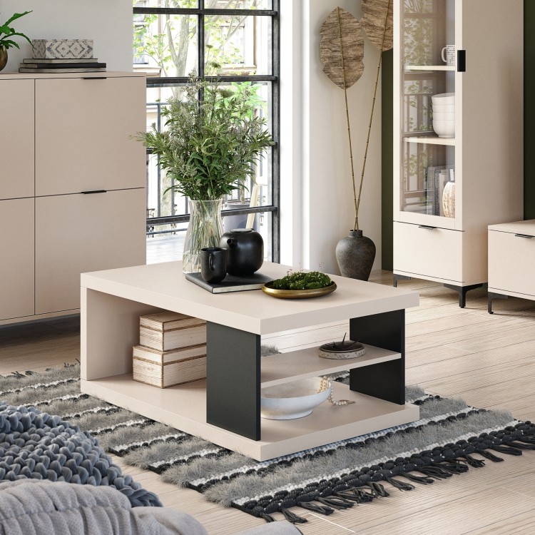 • Sofabord med hylde og opbevaringsplads LORA beige/sort