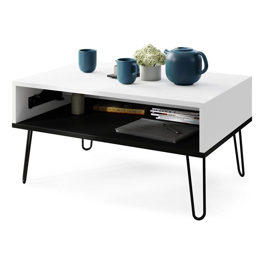 Sofabord med løftbar bordplade og hylde HALIJA hvid/sort
