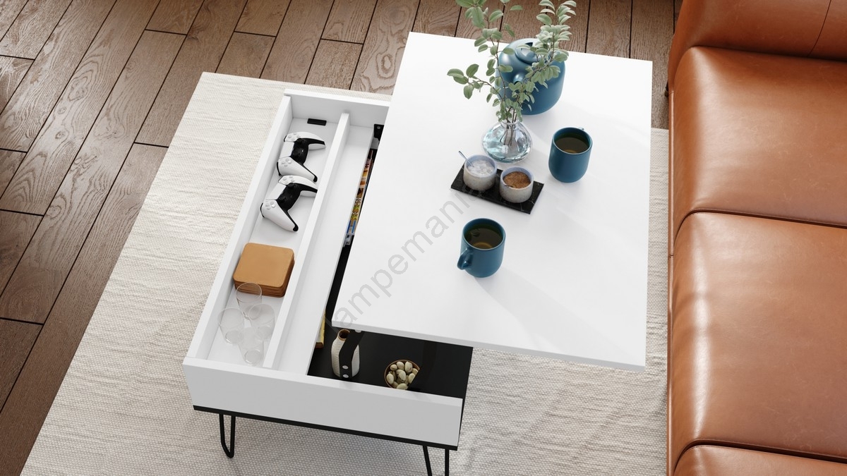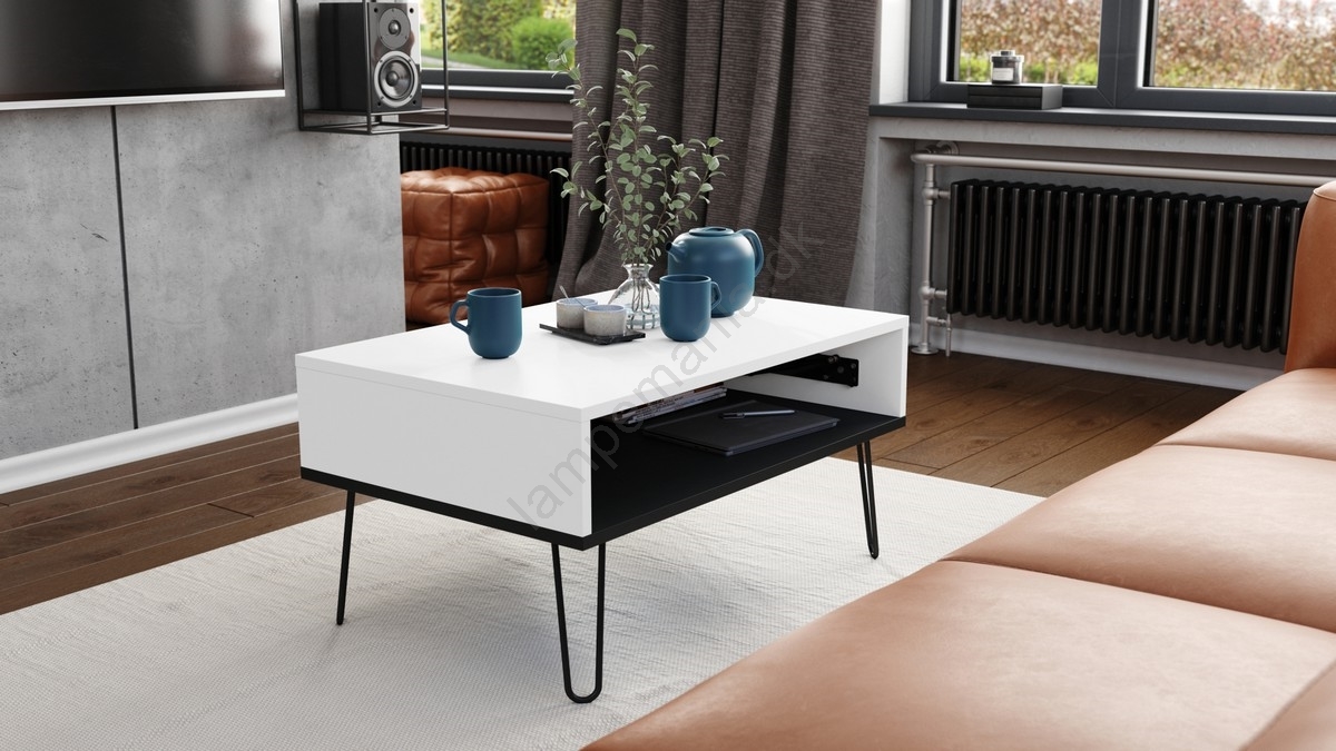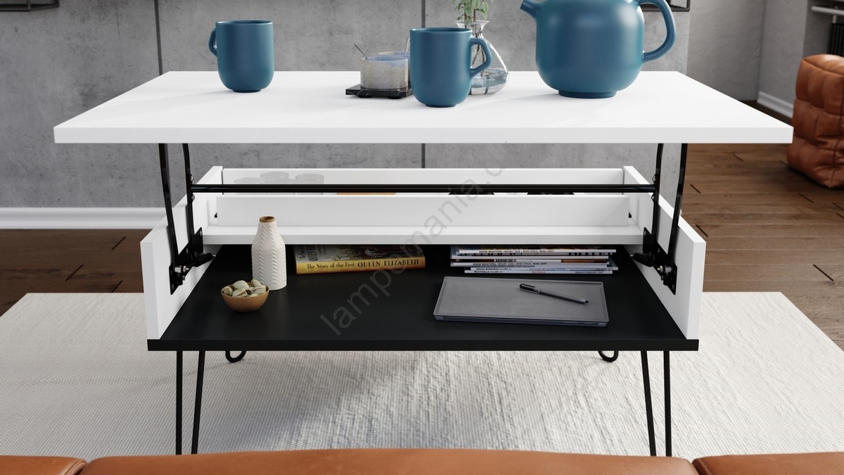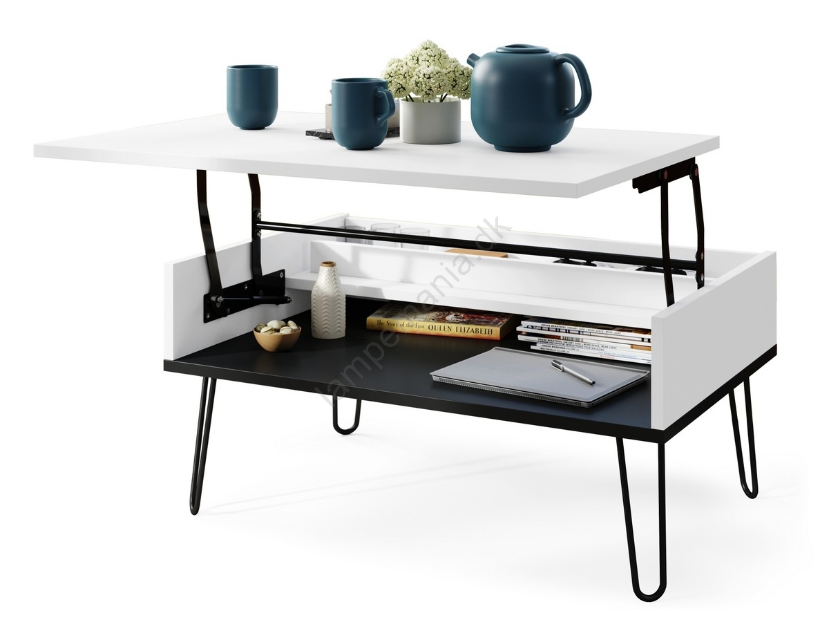 • Sofabord med løftbar bordplade og hylde HALIJA hvid/sort