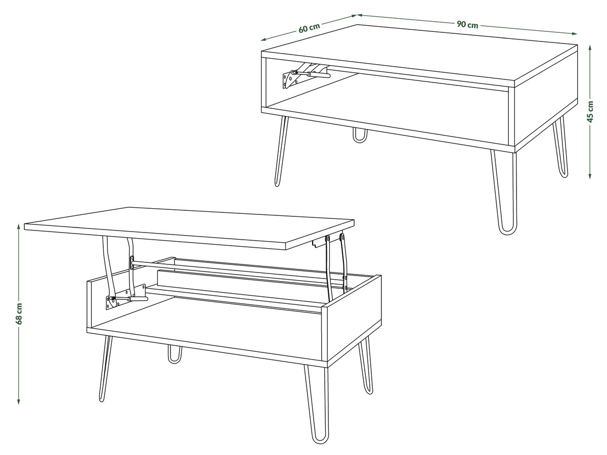 • Sofabord med løftbar bordplade og hylde HALIJA eg craft/sort