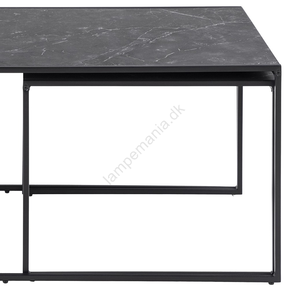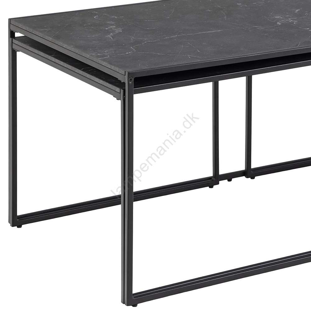 • På grund af de rene linjer, marmoragtigt udseende og sort pulverlakeret stel passer sofabordssættet ind i næsten enhver stue.
