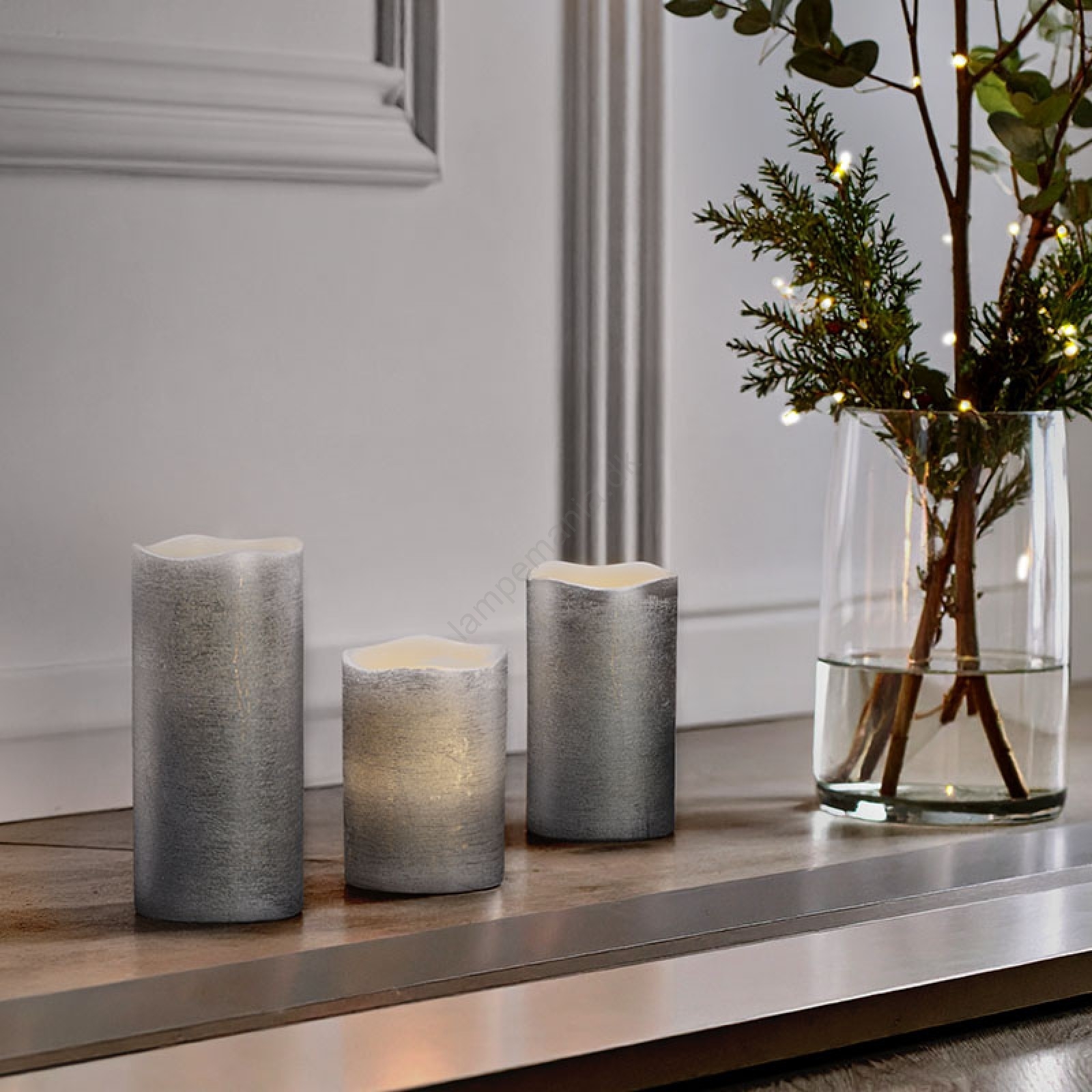• Mål på lysene: diameter 7,5 cm; højde 10/12,5/16 cm.