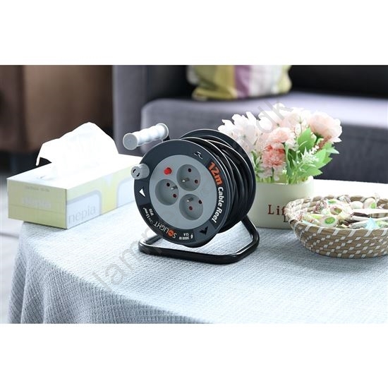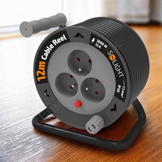 Kabeltromle med forlængerledning – 3 udtag, 12 m