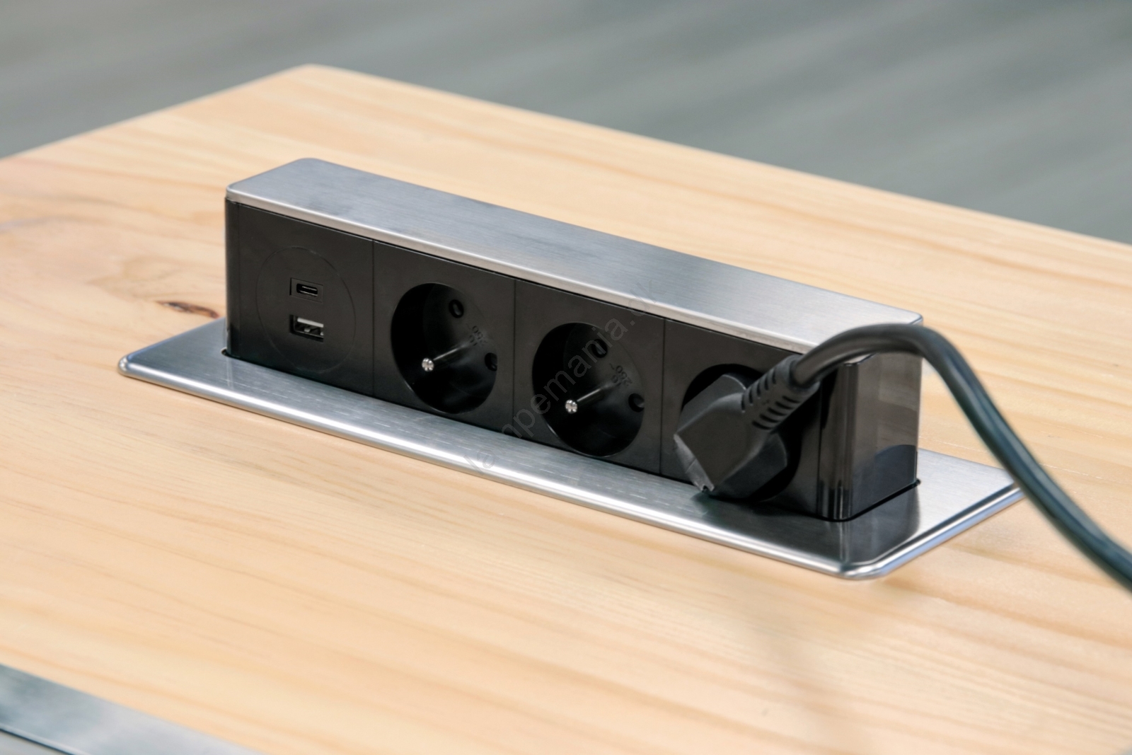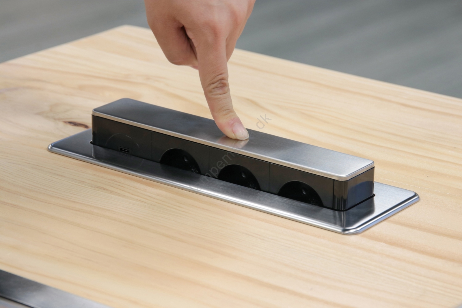 • En udtrækkelig stikkolonne til indbygning i bordpladen eller bordet, som kun trækkes frem ved behov og ellers forbliver skjult, hvilket sparer plads.