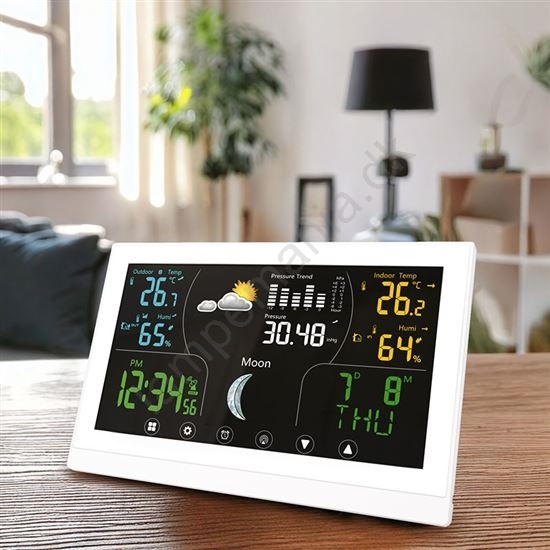 Vejrstation med farvet display 5V/2xAAA hvid