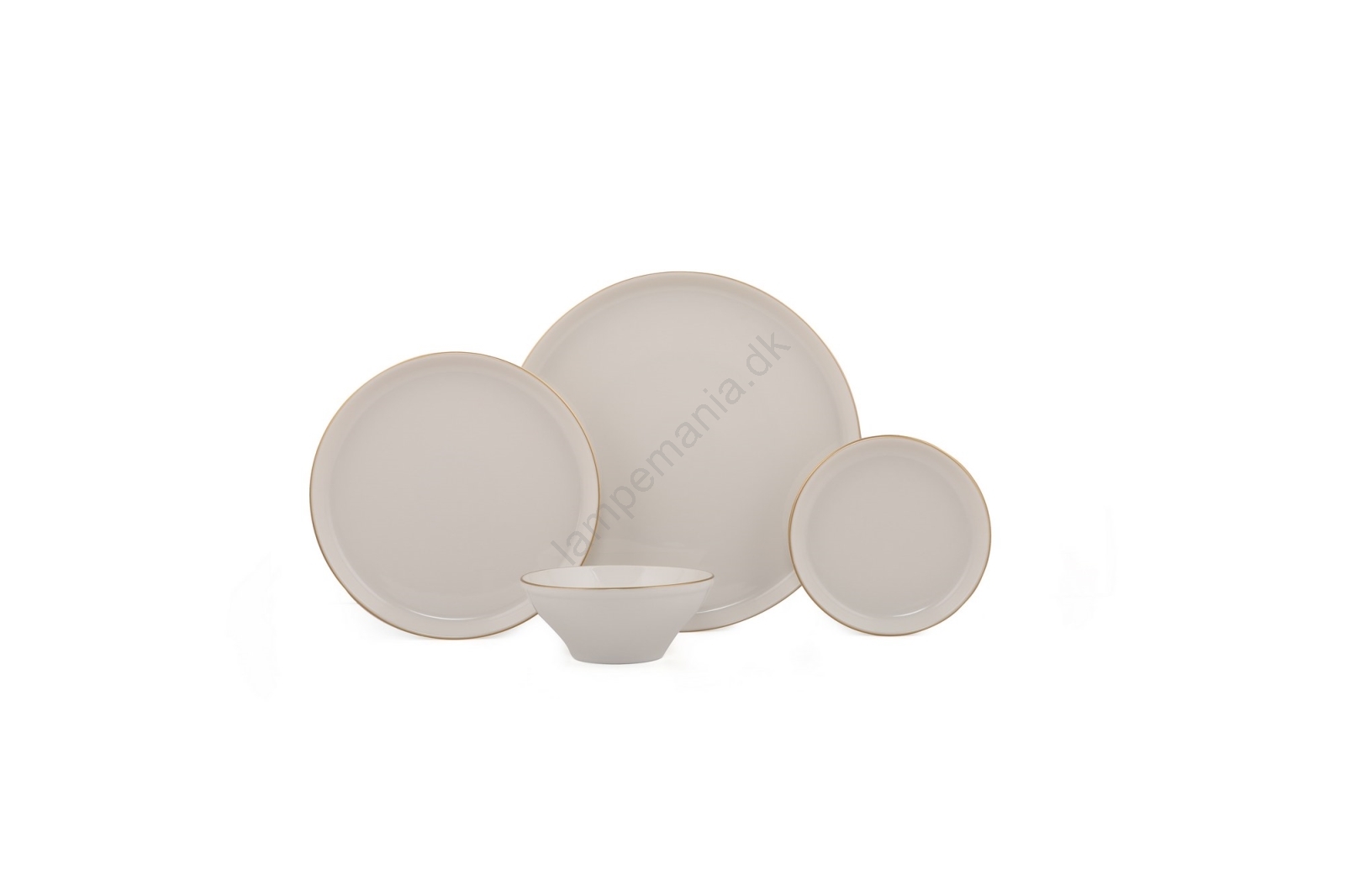 Spisesæt, 16 dele, beige/guldfarvet, porcelæn