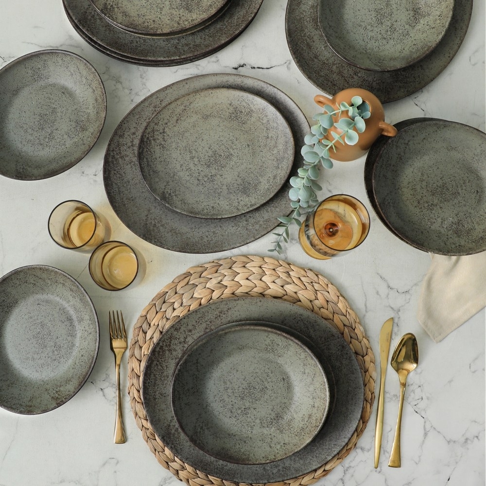 Spisesæt 18 dele antracit/grøn/stentøj
