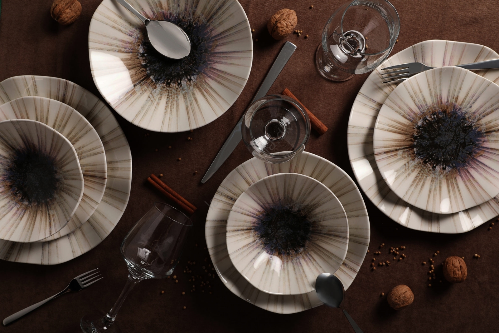 Spisesæt 24 dele, brun/porcelæn