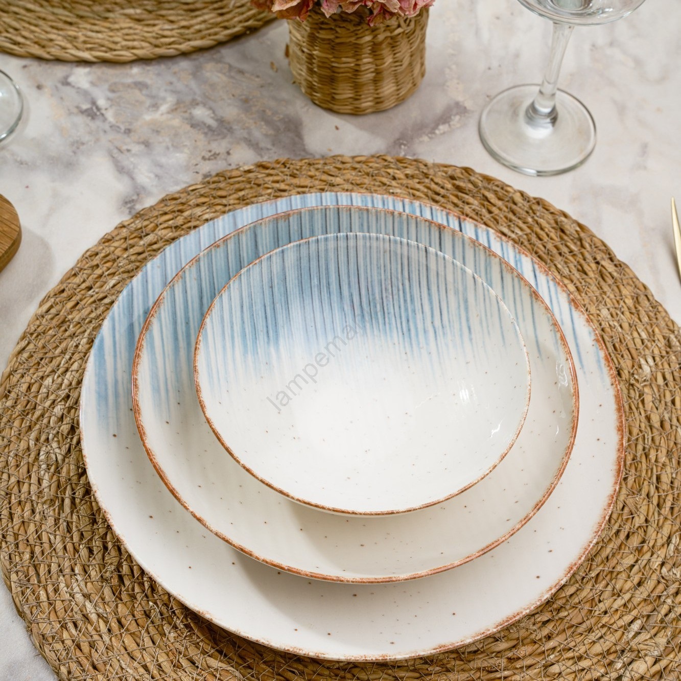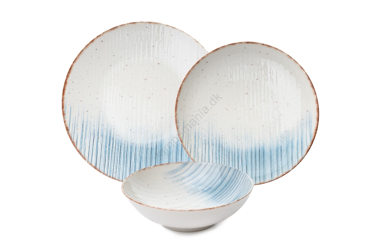 Spisesæt 24 dele, hvid/blå, porcelæn