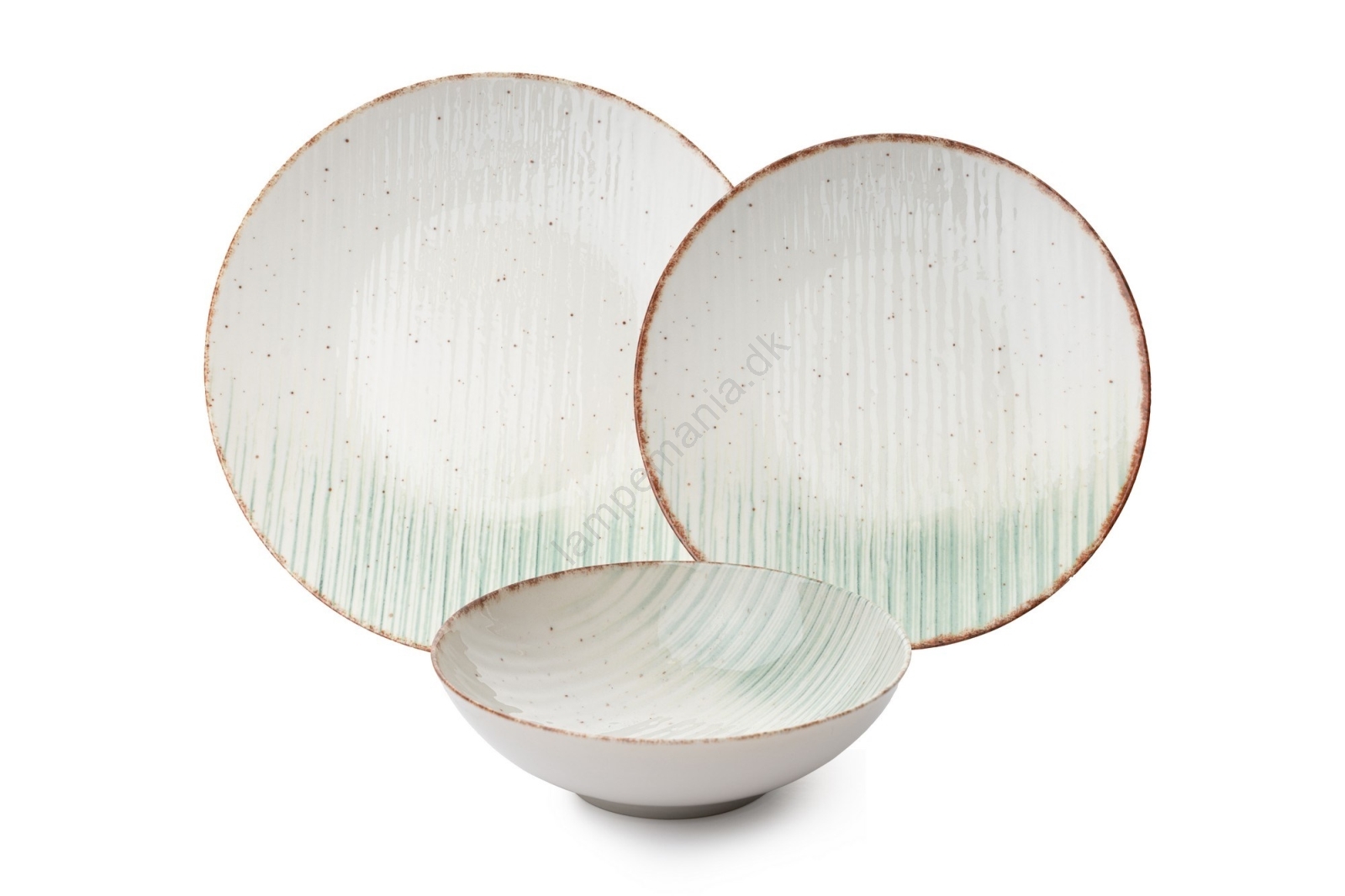 Spisesæt 24 dele i hvidt/grønt porcelæn