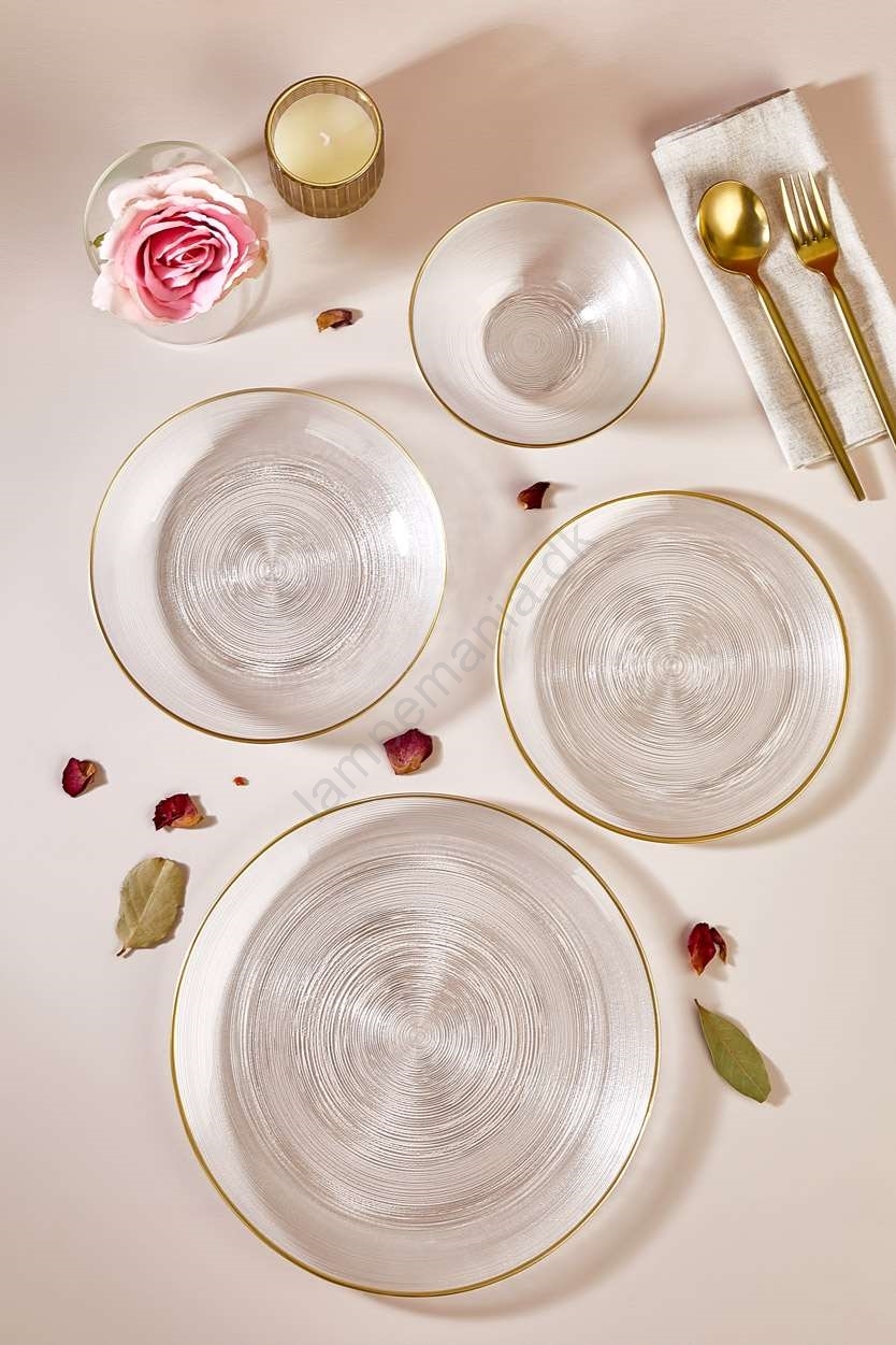 Spisesæt 24 stk klart/guldfarvet/glas