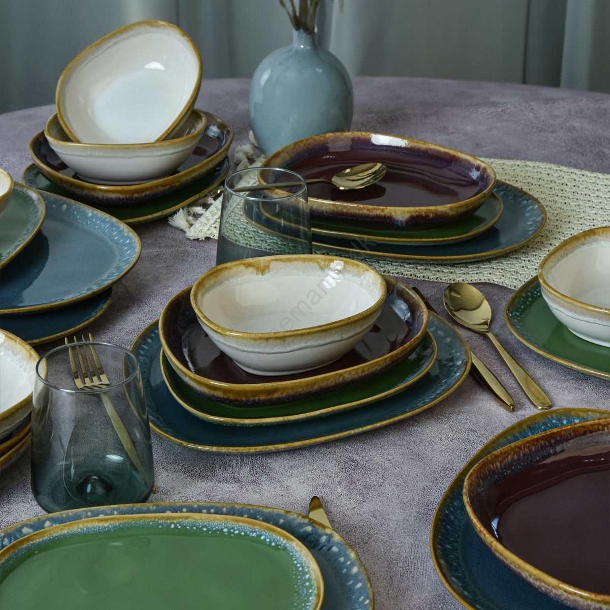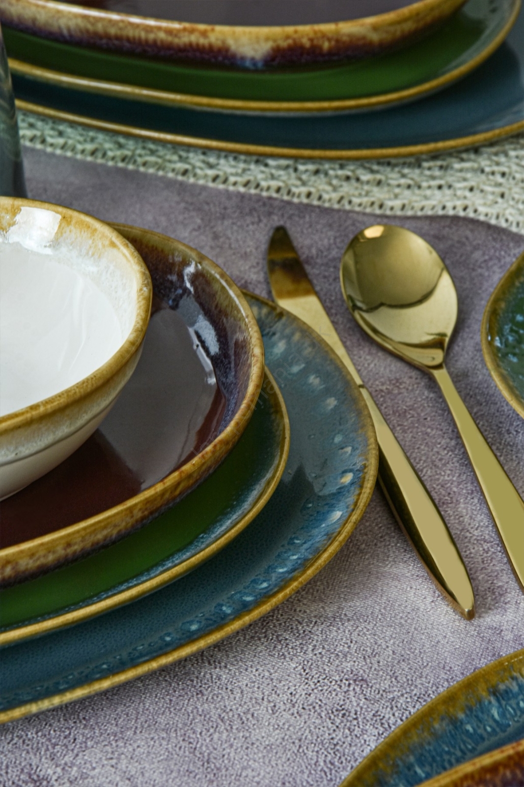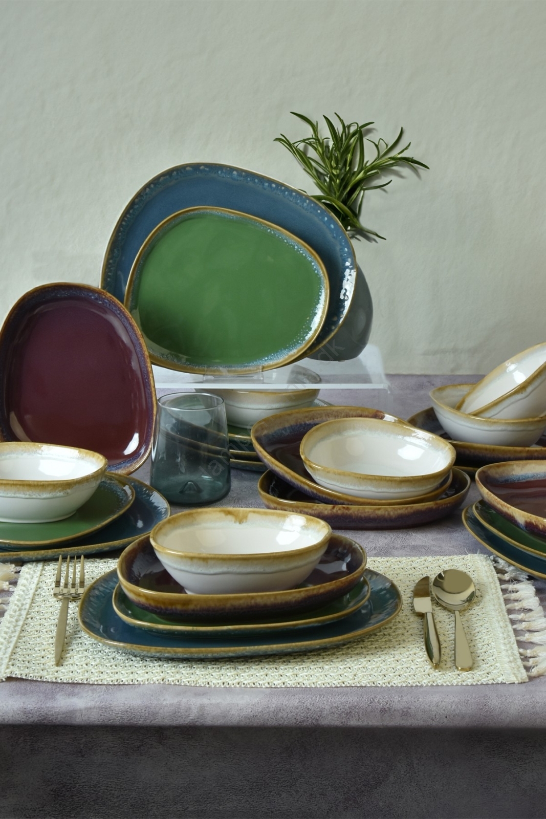 Spisesæt 24 stk. multifarvet/stentøj