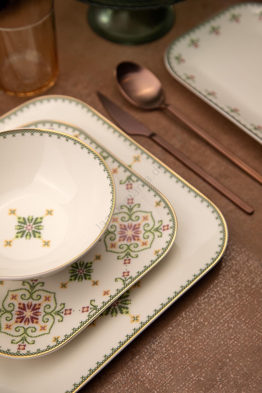 Spisesæt 26 dele hvid/grøn/porcelæn