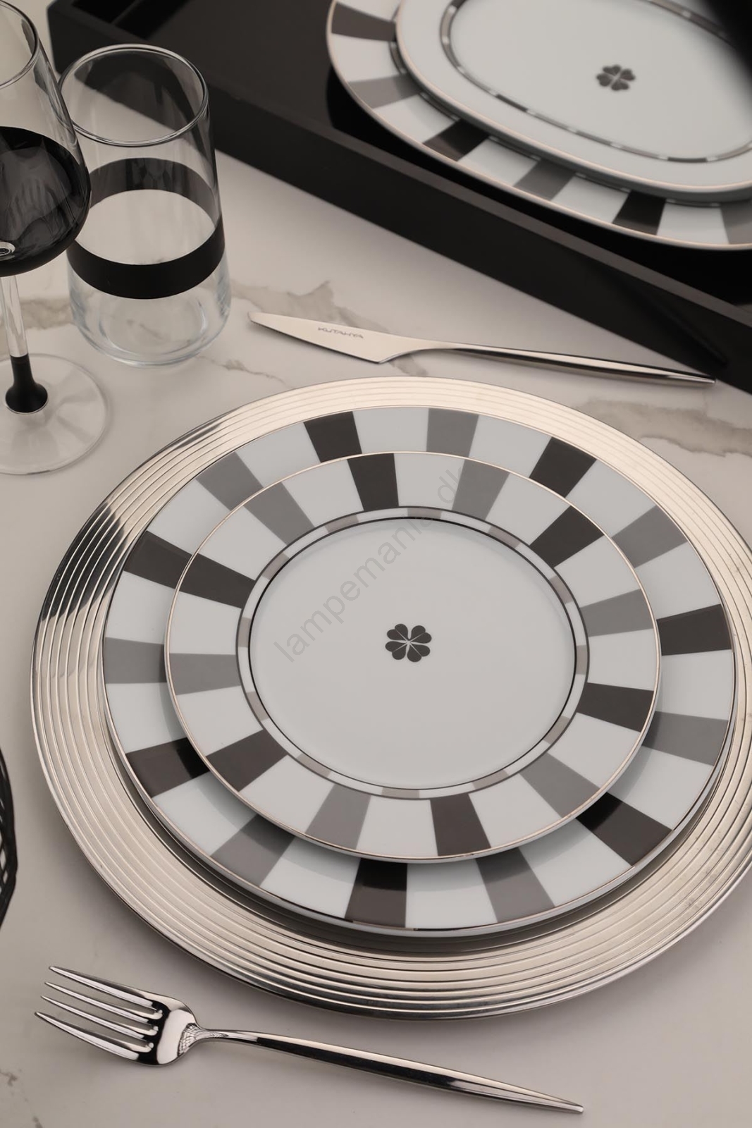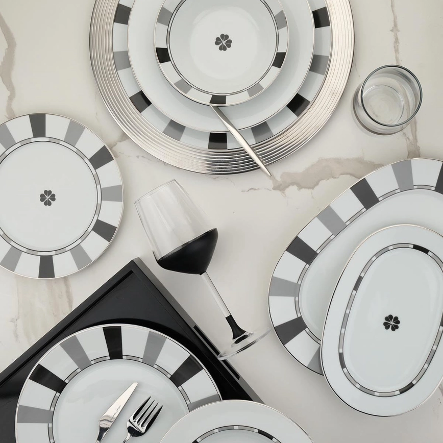 Spisestel, 27 dele, hvid/grå, porcelæn