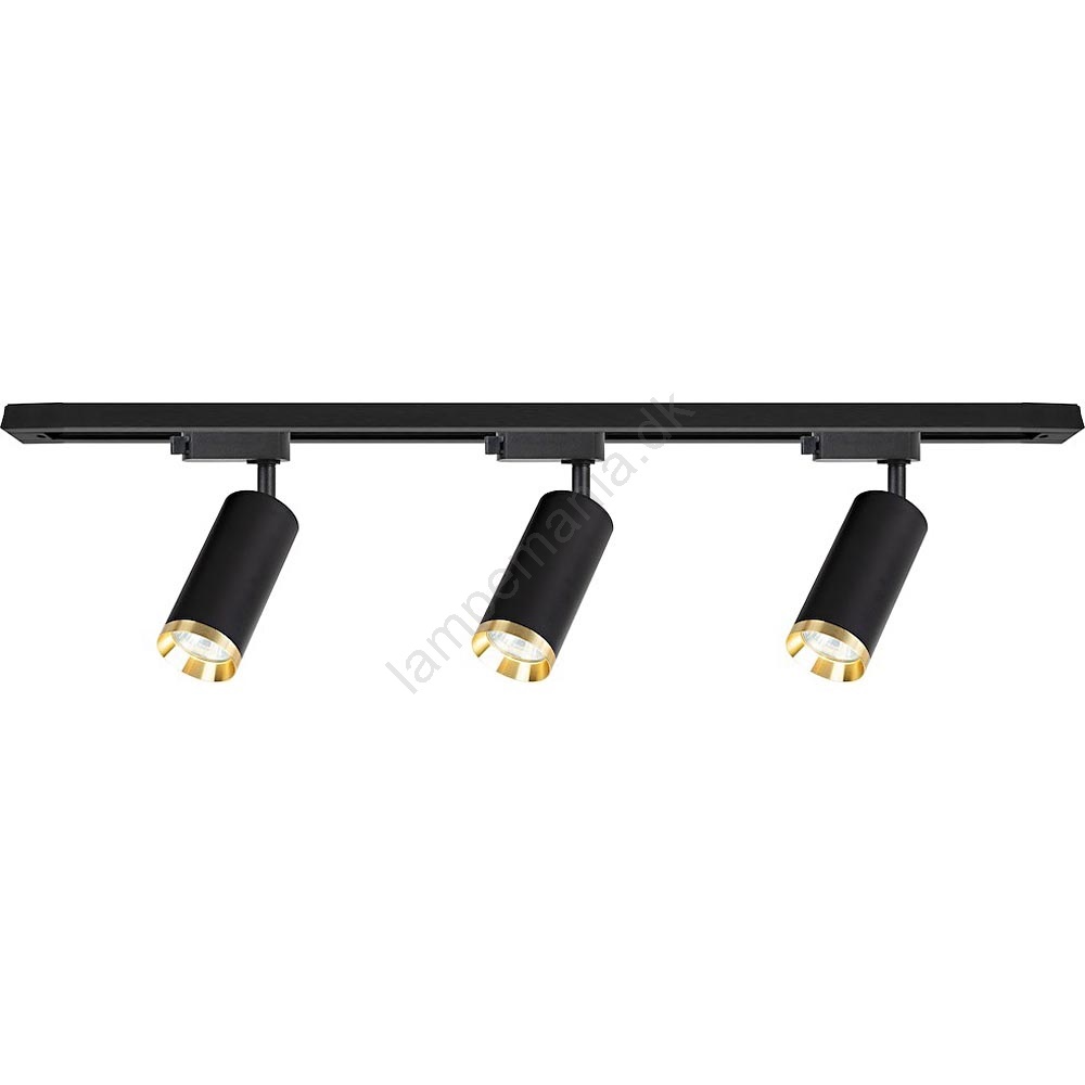 Spotlampe til skinnesystem MICA 3xGU10/10W/230V sort/guld er kendetegnet ved et flot og funktionelt design.  En lyspære med GU10-fatning passer til denne lampe. Her kan du købe andre pærer til fordelagtige priser. Du får en interessant tilføjelse til dit hjem.