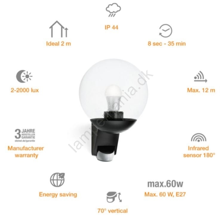 • Væglampe med sensor og enkelt klassisk design til hus og have.