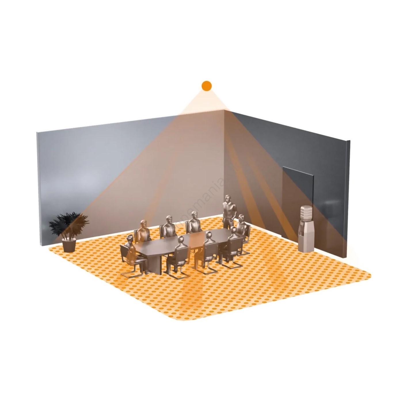 • Meget præcis infrarød detektor med en tilstedeværelsesdetektionszone på 8 x 8 m (64 m²).
