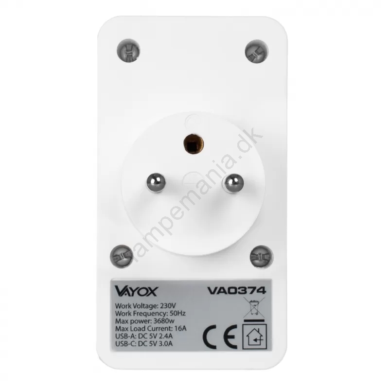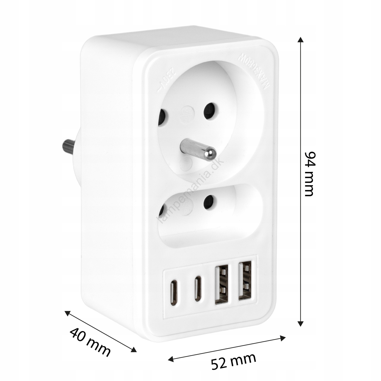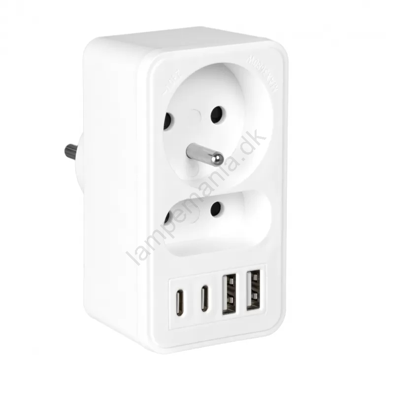 • Stikdåse med 2 stikkontakter + 2x USB-A + 2x USB-C.