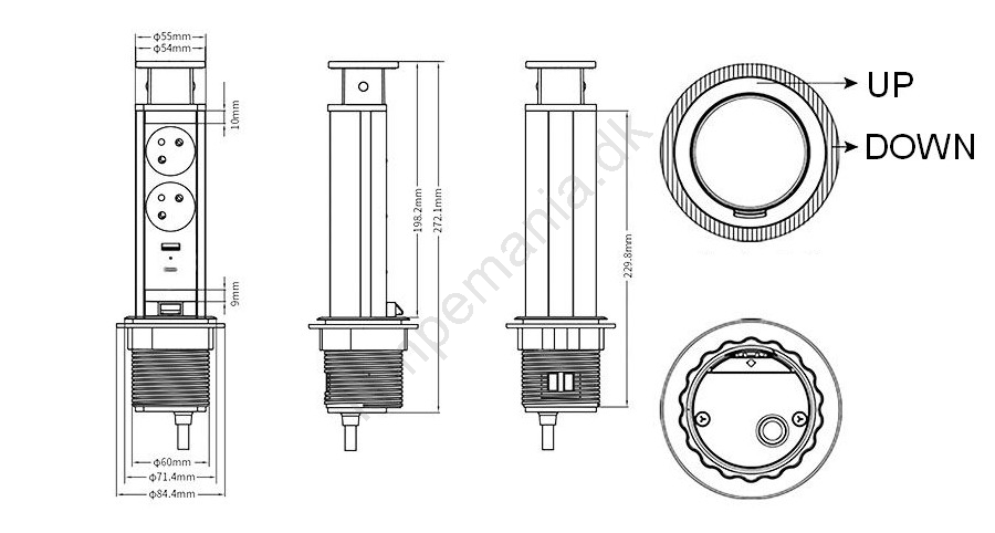 • Strømfordelingssøjle (2x stikkontakt og 2x USB) velegnet til arbejdsplader, borde, køkkener og møbler - kort sagt hvor som helst, du har brug for stikkontakter.