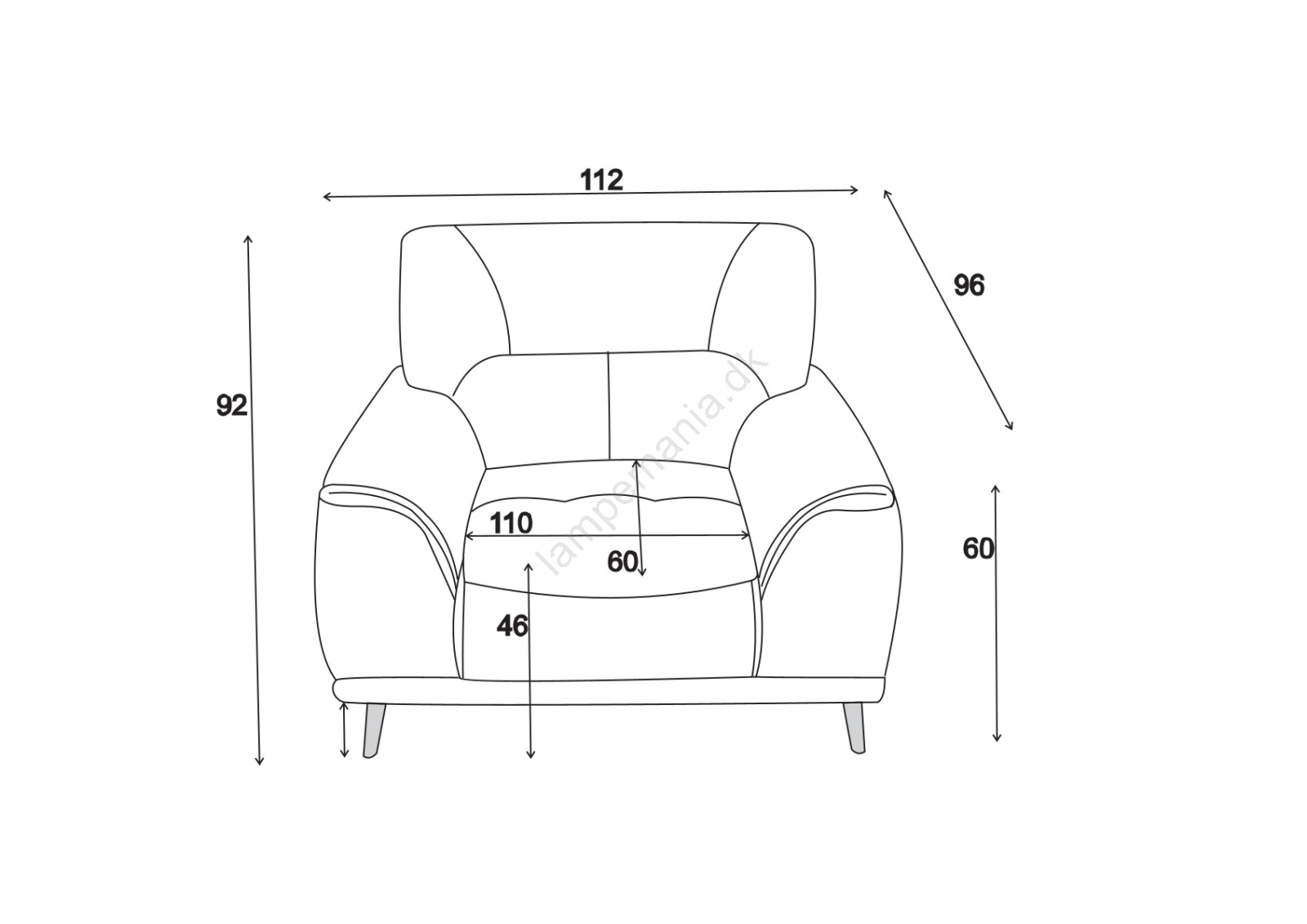 • Med en højde på 92 cm, en behagelig sædehøjde på 46 cm og en dybde på 60 cm sikrer den ergonomisk og afslappende siddekomfort.