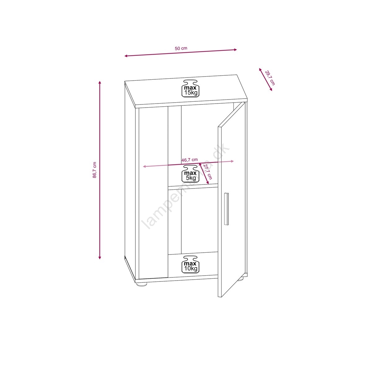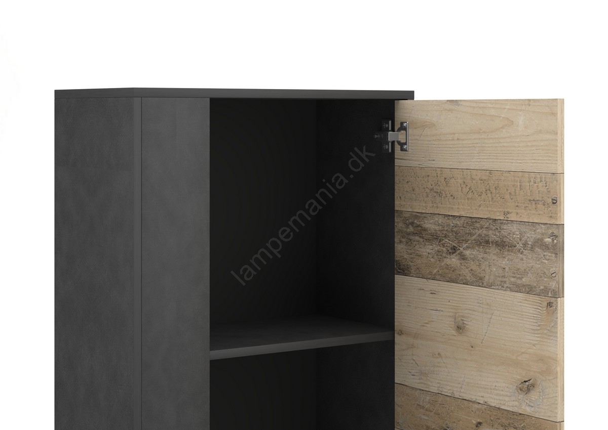 • Væghængt skab og et højt sideskab tilbyder yderligere plads til bøger, dekorationer og husholdningsartikler.