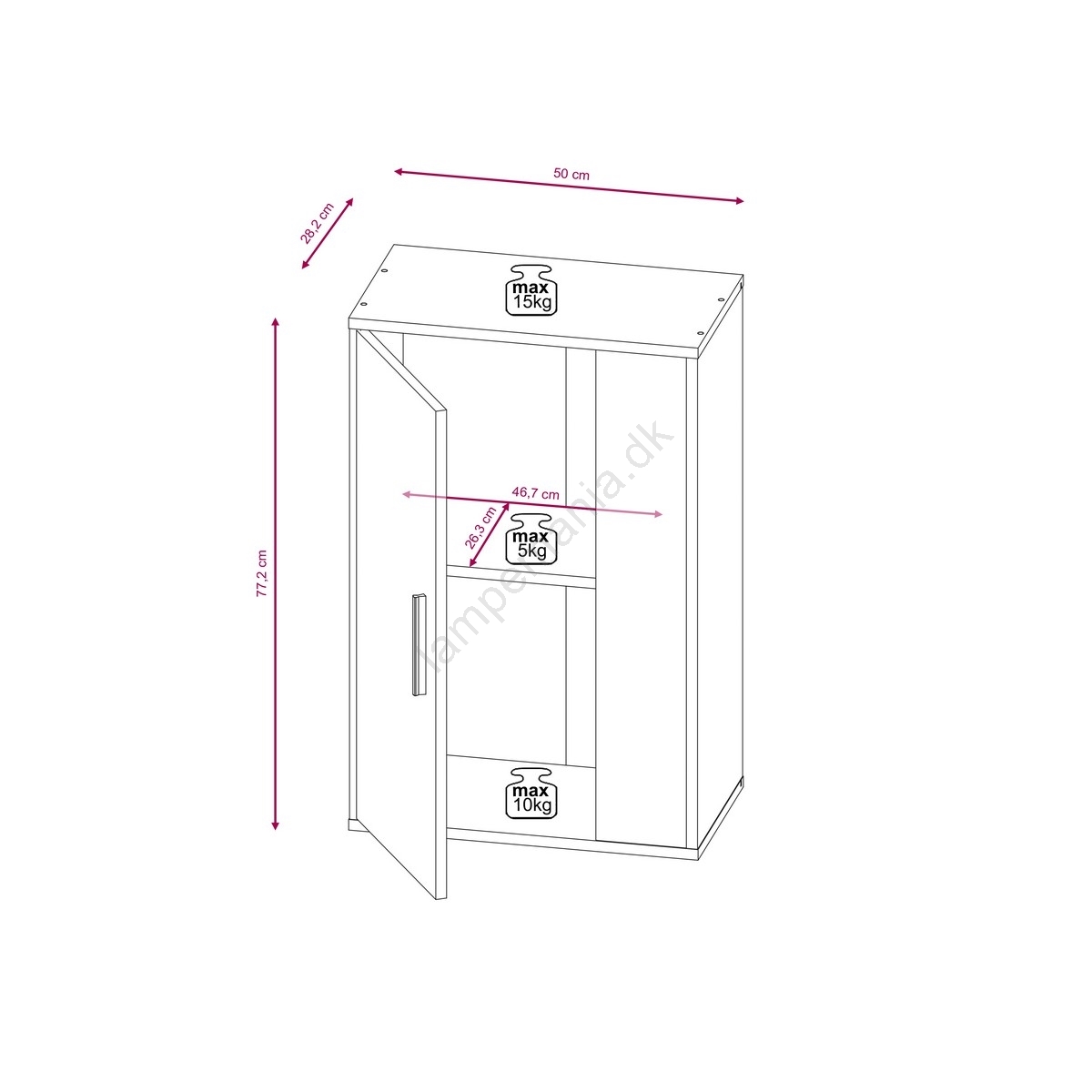 • Væghængt skab og høj sideskab tilbyder ekstra plads til bøger, dekorationer og husholdningsartikler.