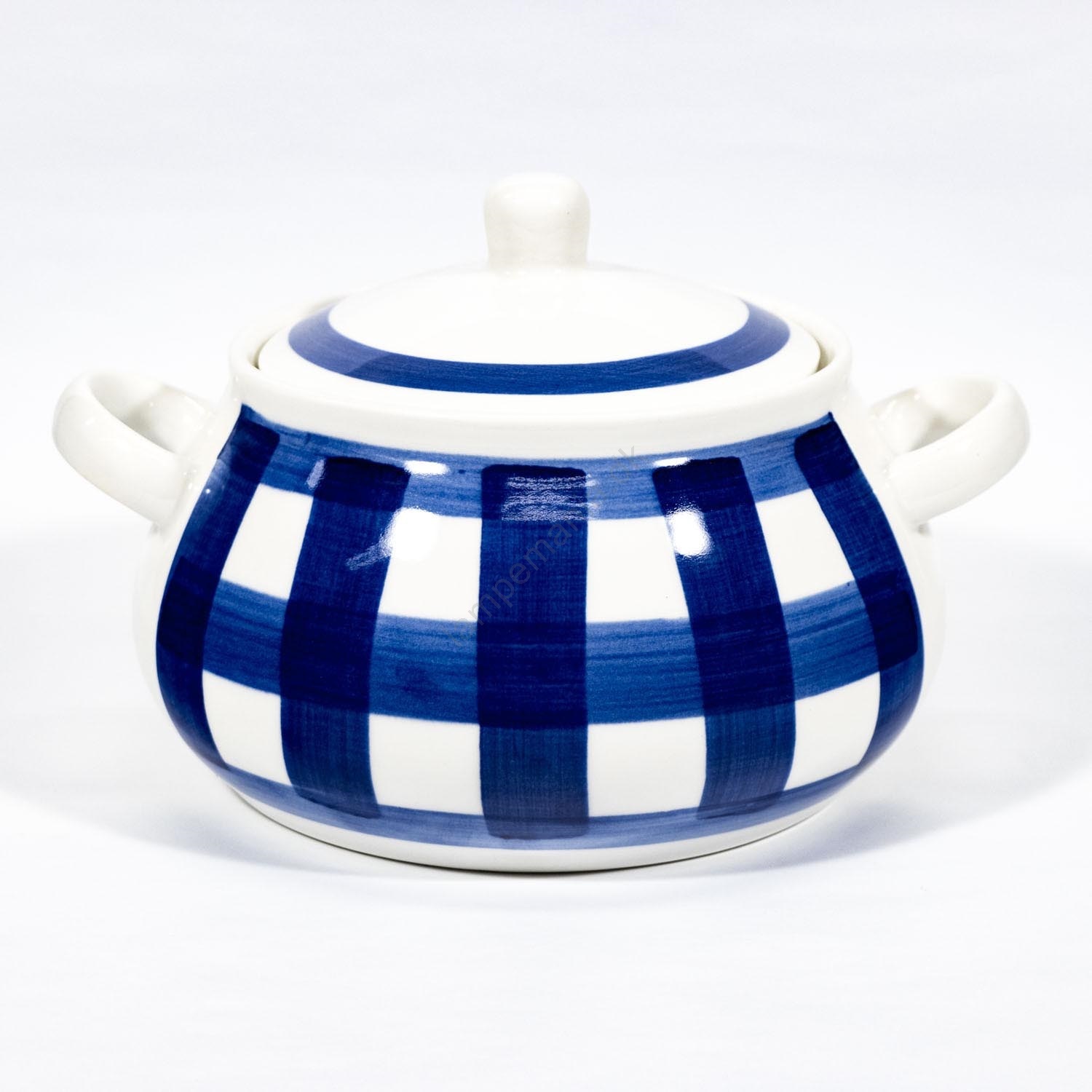 Suppeskål med låg keramik hvid og blå