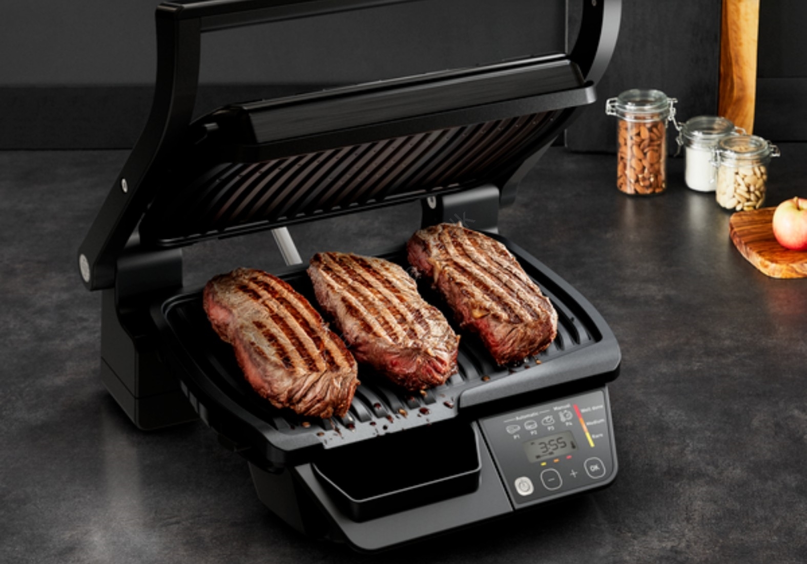 • Intelligent kontaktgrill, der automatisk måler råvarens tykkelse og justerer tilberedningstiden – for perfekte resultater fra blodig til gennemstegt.