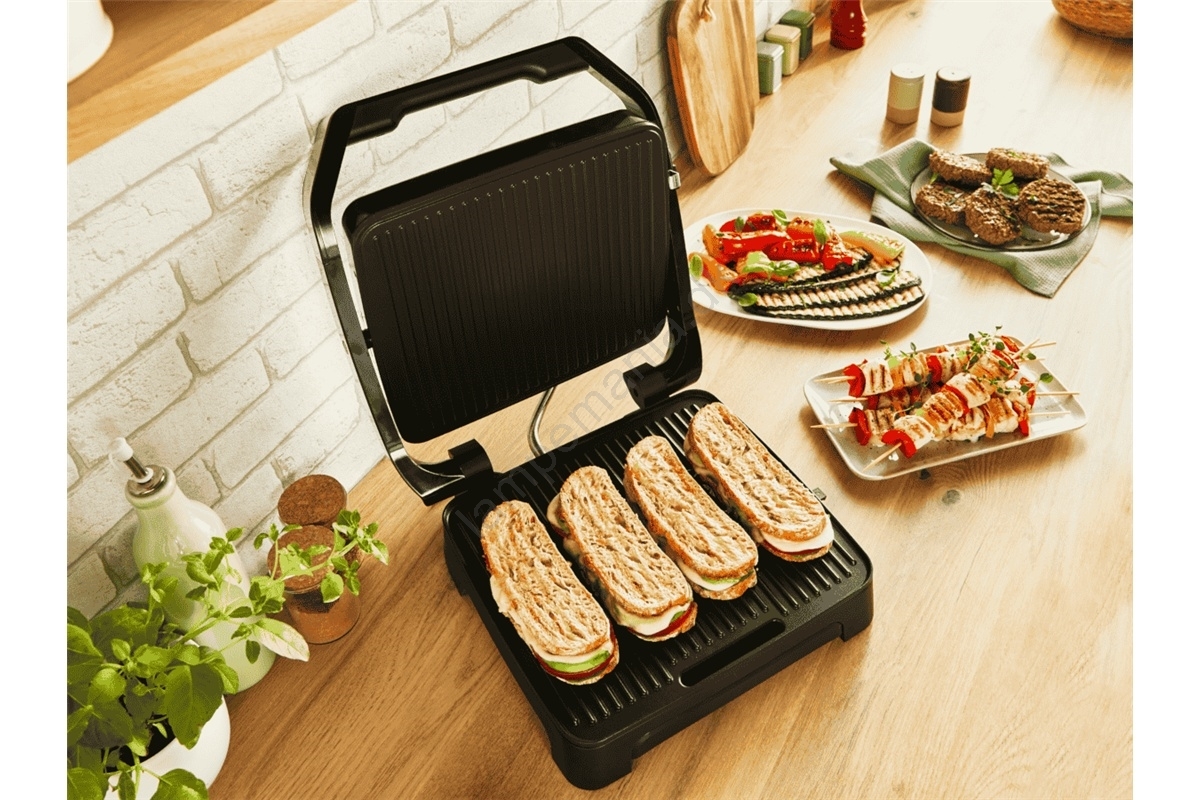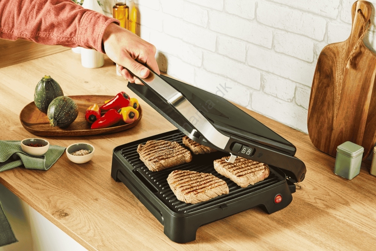 • Kontaktgrill „2-i-1“: kombinerer funktionerne fra en panini-grill og en traditionel grill – så du nemt kan tilberede sandwiches, kød, grøntsager og større portioner.
