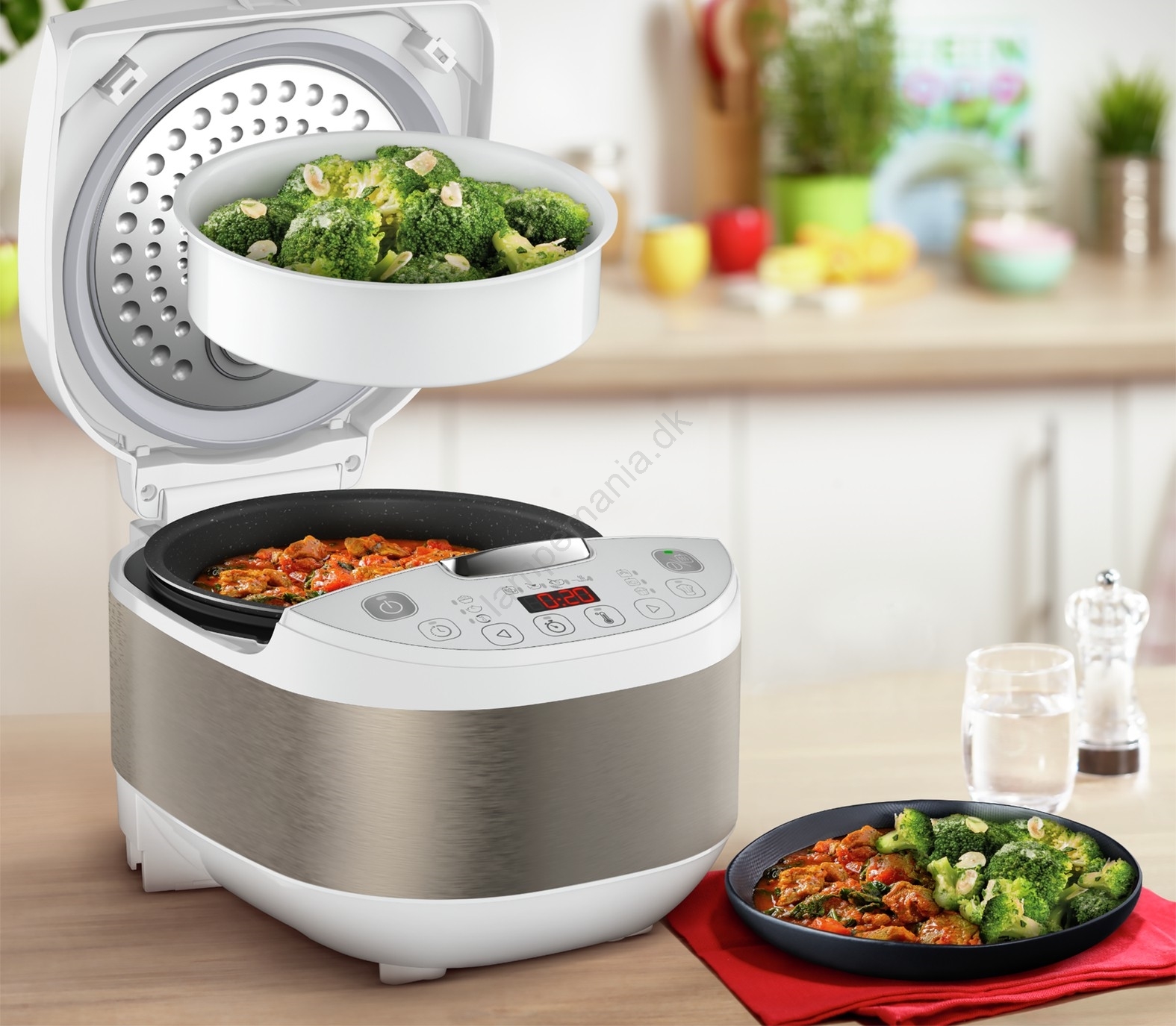• I pakken medfølger et rigt tilbehørssæt: dampindsats, ske, øseske og målebæger.