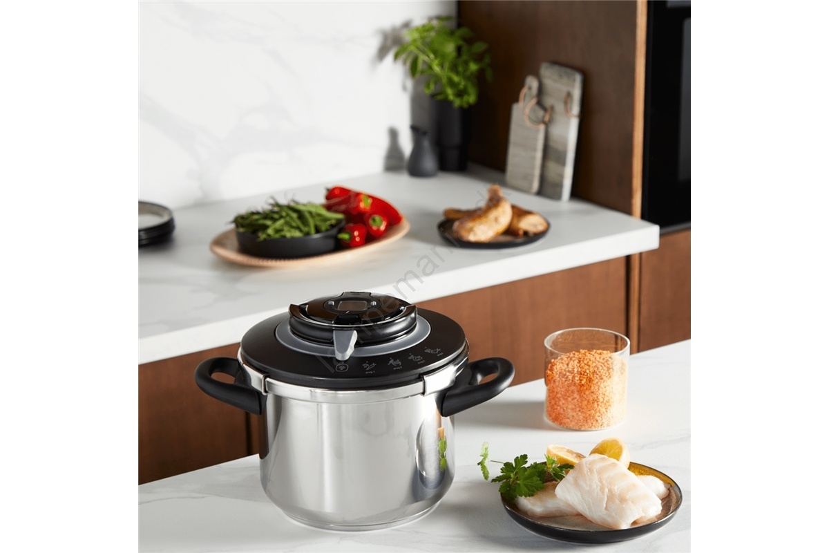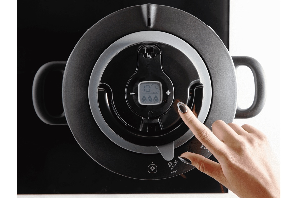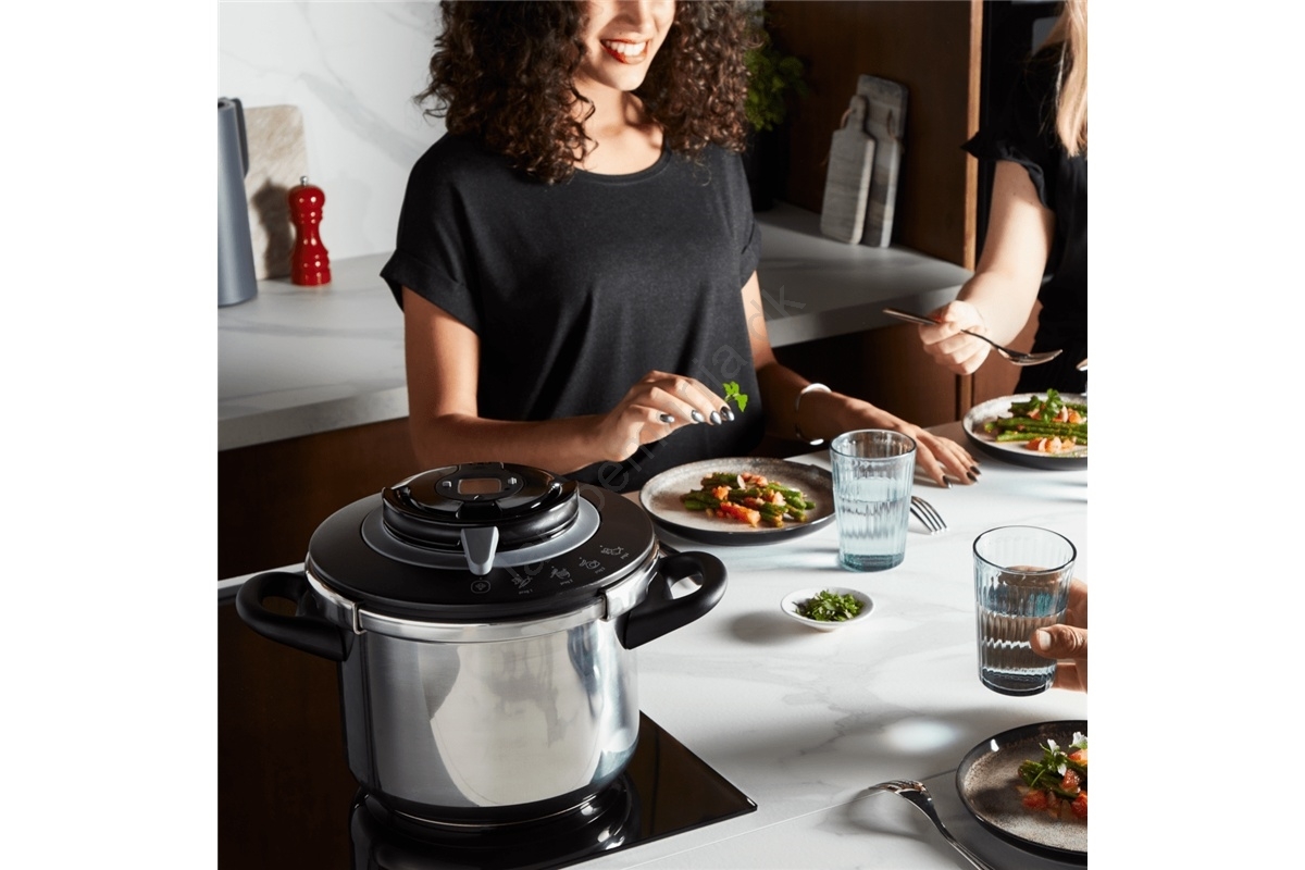 • Muliggør madlavning op til to gange hurtigere end traditionel kogning takket være tryksystemet.