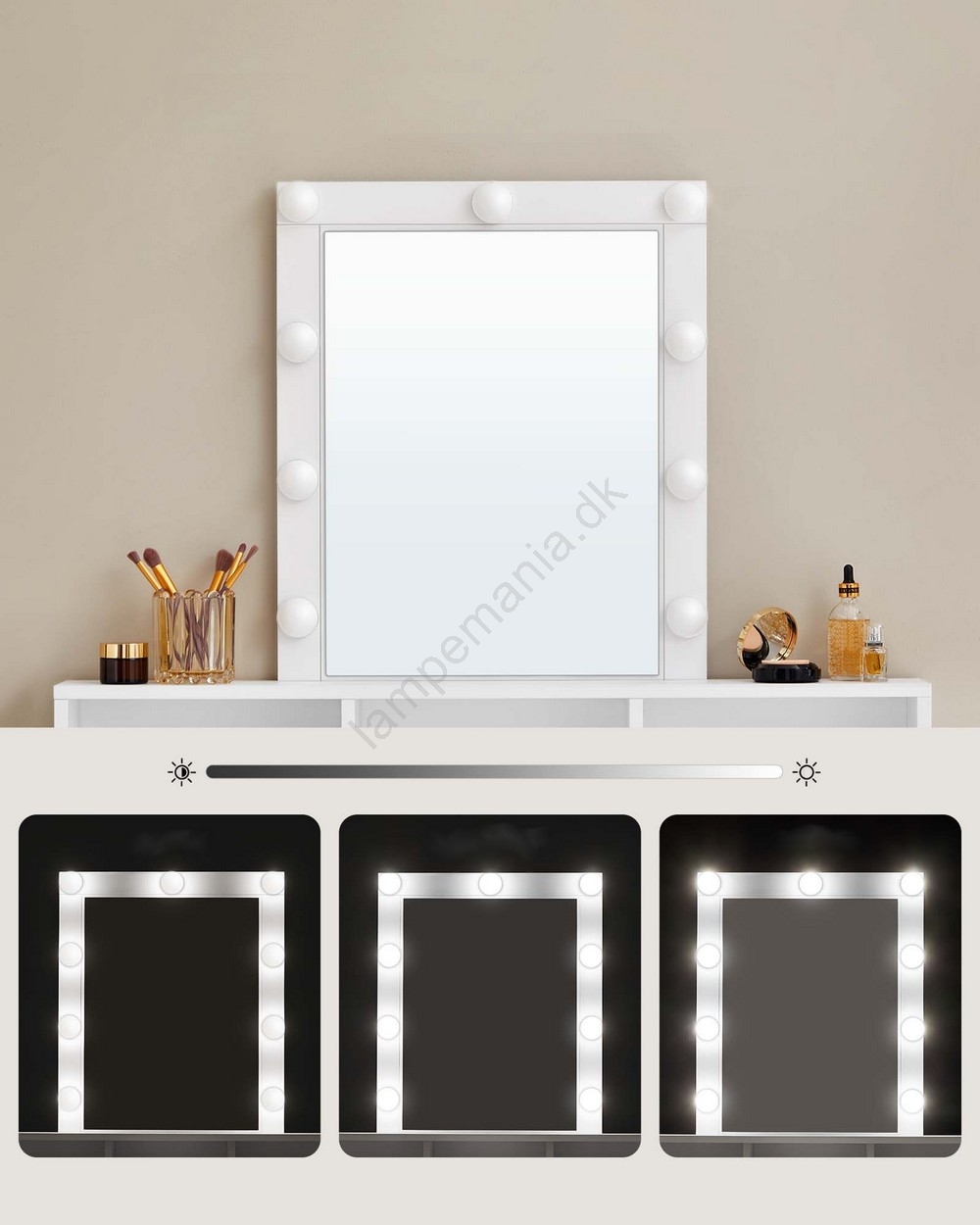 • Den er udstyret med 9 dæmpbare LED-pærer omkring spejlet.