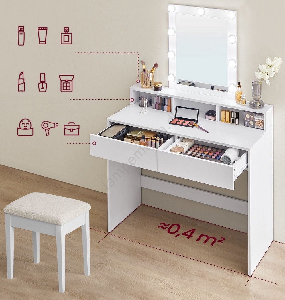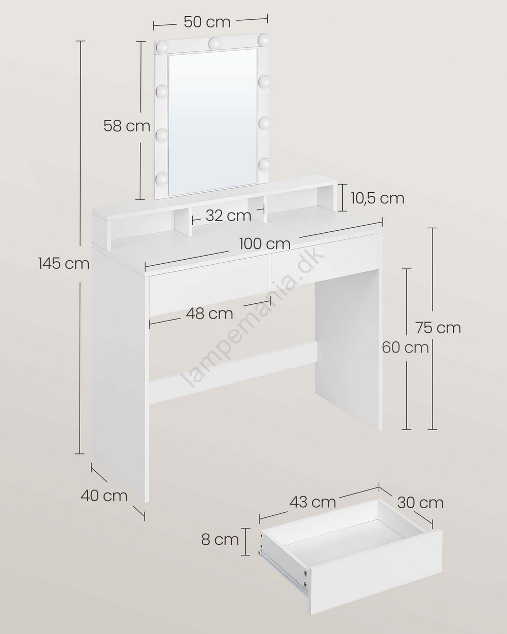 • 2 skuffer og en hylde holder din kosmetik og makeup let tilgængelig.