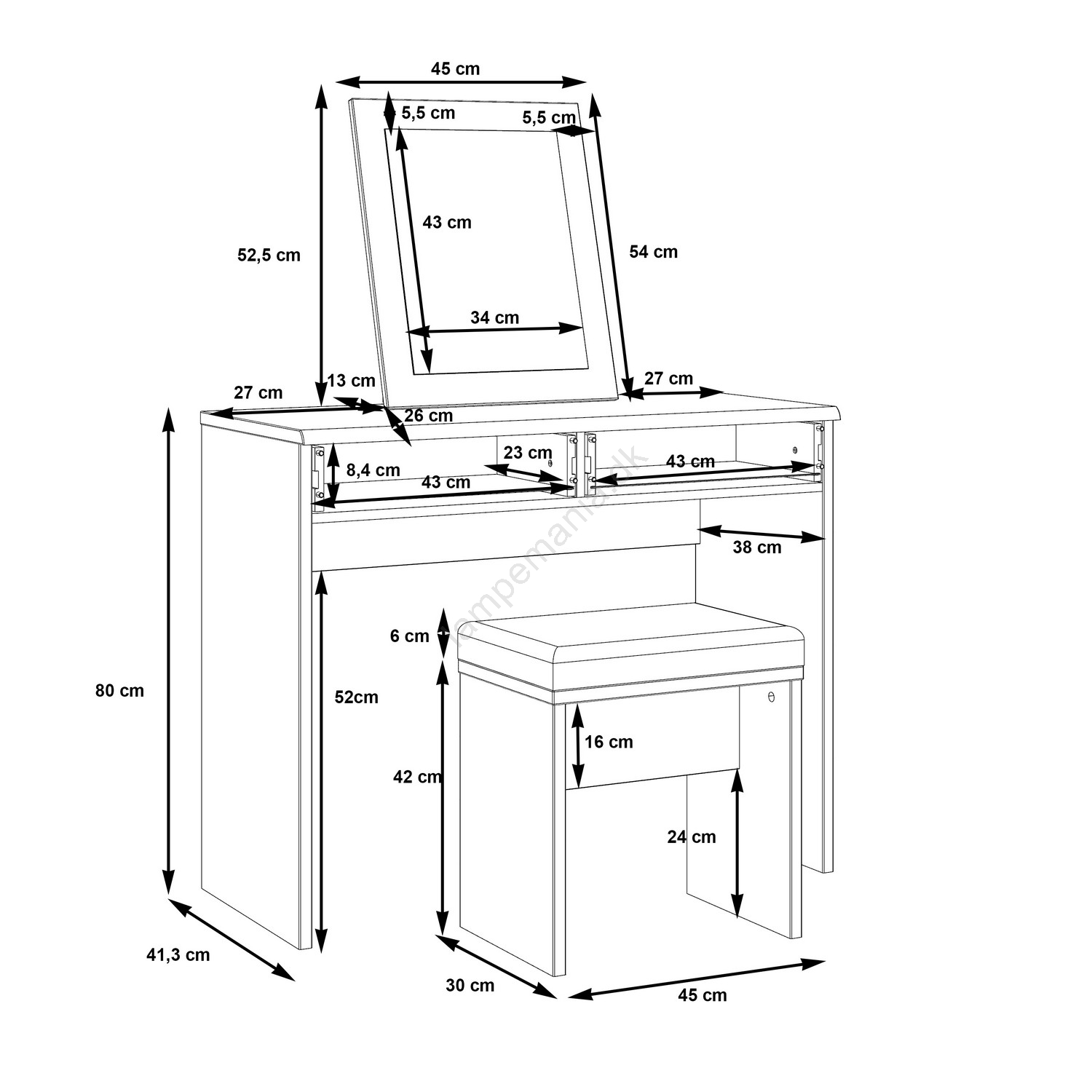 • Det har to skuffer, som giver rigelig opbevaringsplads til kosmetik og andre ting.