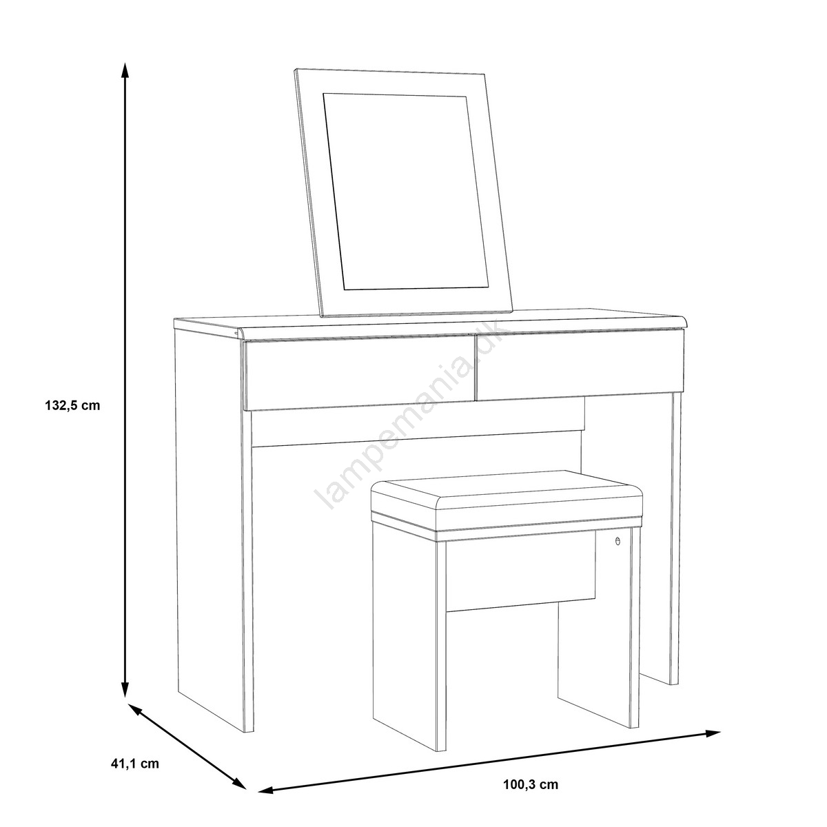 • Det har to skuffer, som giver dig rigelig opbevaringsplads til kosmetik og andre ting.