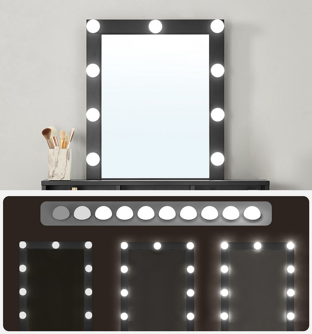 • Har 9 justerbare LED-lys rundt om spejlet.