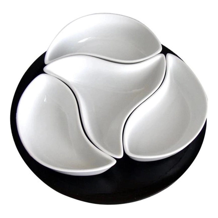 • Stilfuldt sæt keramiske skåle, suppleret med en elegant træbakke.