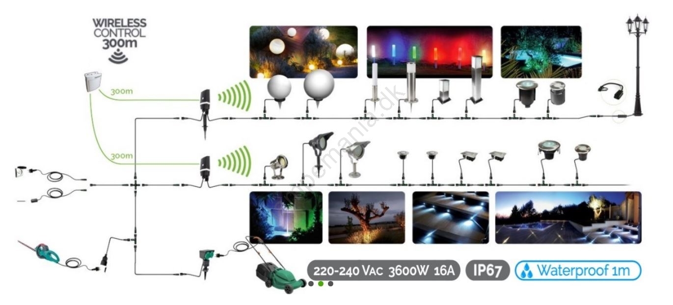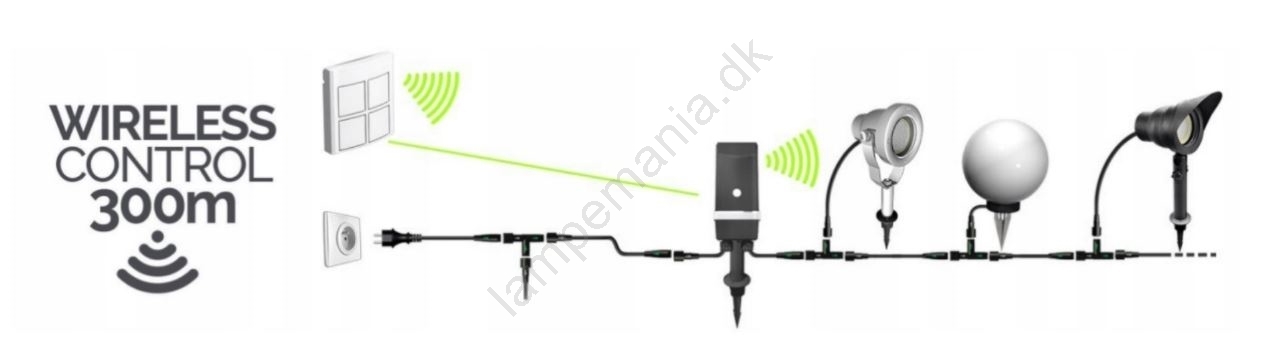 • Med kontakten kan du styre belysningen på op til 300 meters afstand.