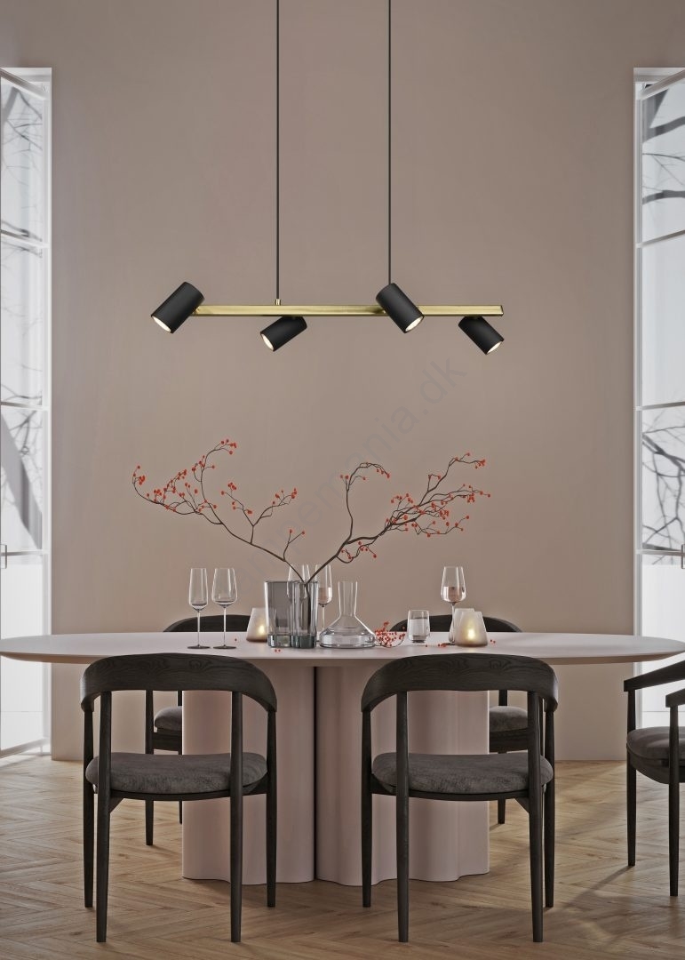 Trio - Loftlampe på wire MARLEY 4xGU10/35W/230V sort/guld er kendetegnet ved et flot og funktionelt design.  En lyspære med GU10-fatning passer til denne lampe. Her kan du købe andre pærer til fordelagtige priser. Du får en interessant tilføjelse til dit hjem.
