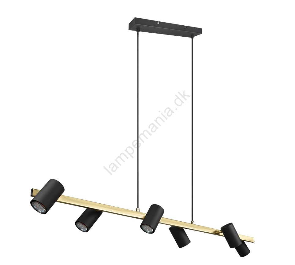 Trio - MARLEY pendel på wire 6xGU10/35W/230V sort/guld er kendetegnet ved et flot og funktionelt design.  En lyspære med GU10-fatning passer til denne lampe. Her kan du købe andre pærer til fordelagtige priser. Du får en interessant tilføjelse til dit hjem.