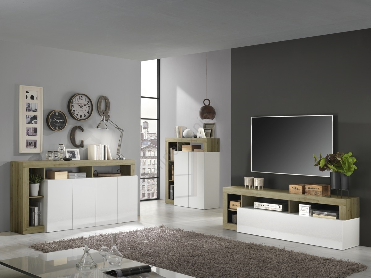 • TV-bord LENOR hvid/lys eg