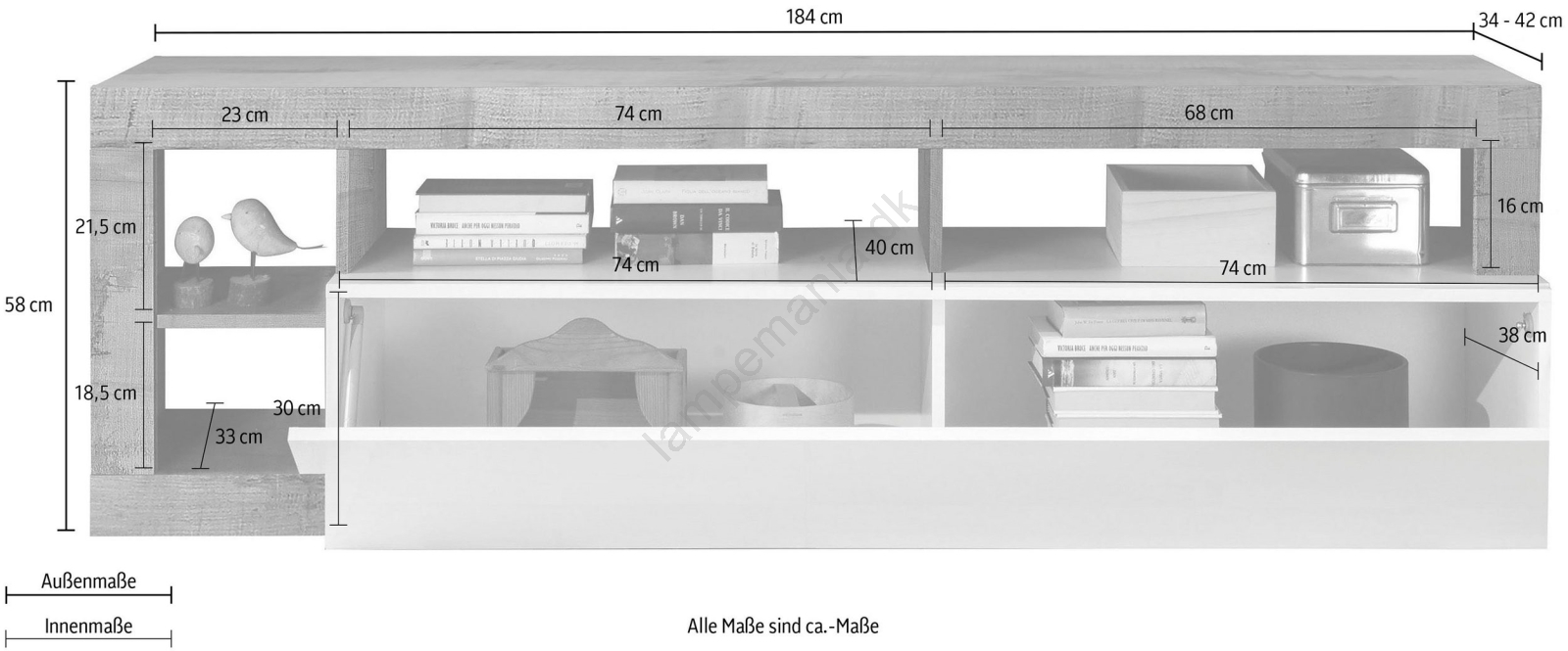 • TV-bord LENOR hvid/grå beton