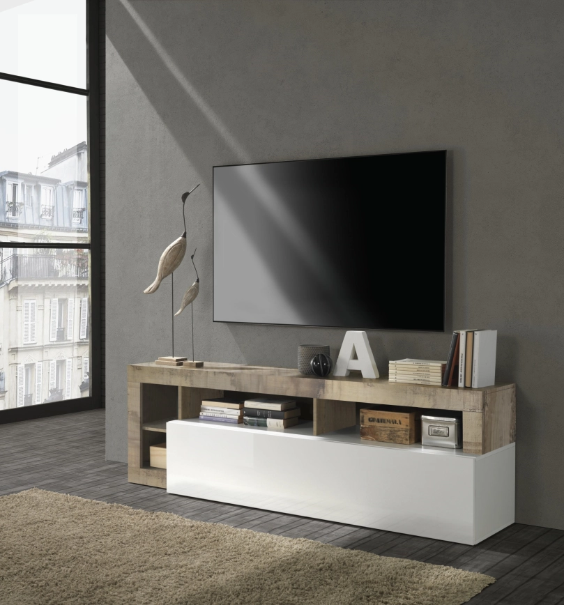 • TV-bord LENOR hvid/grå beton