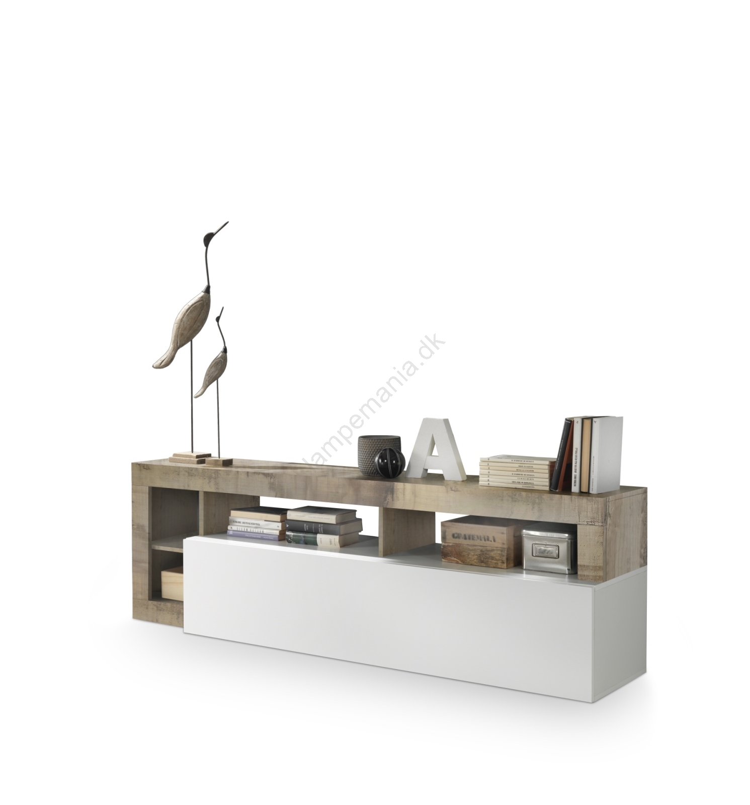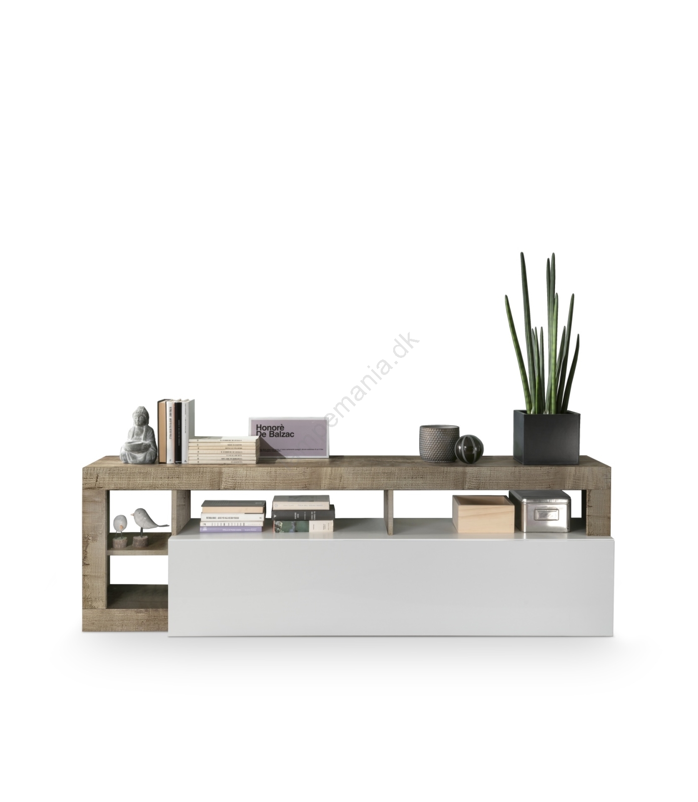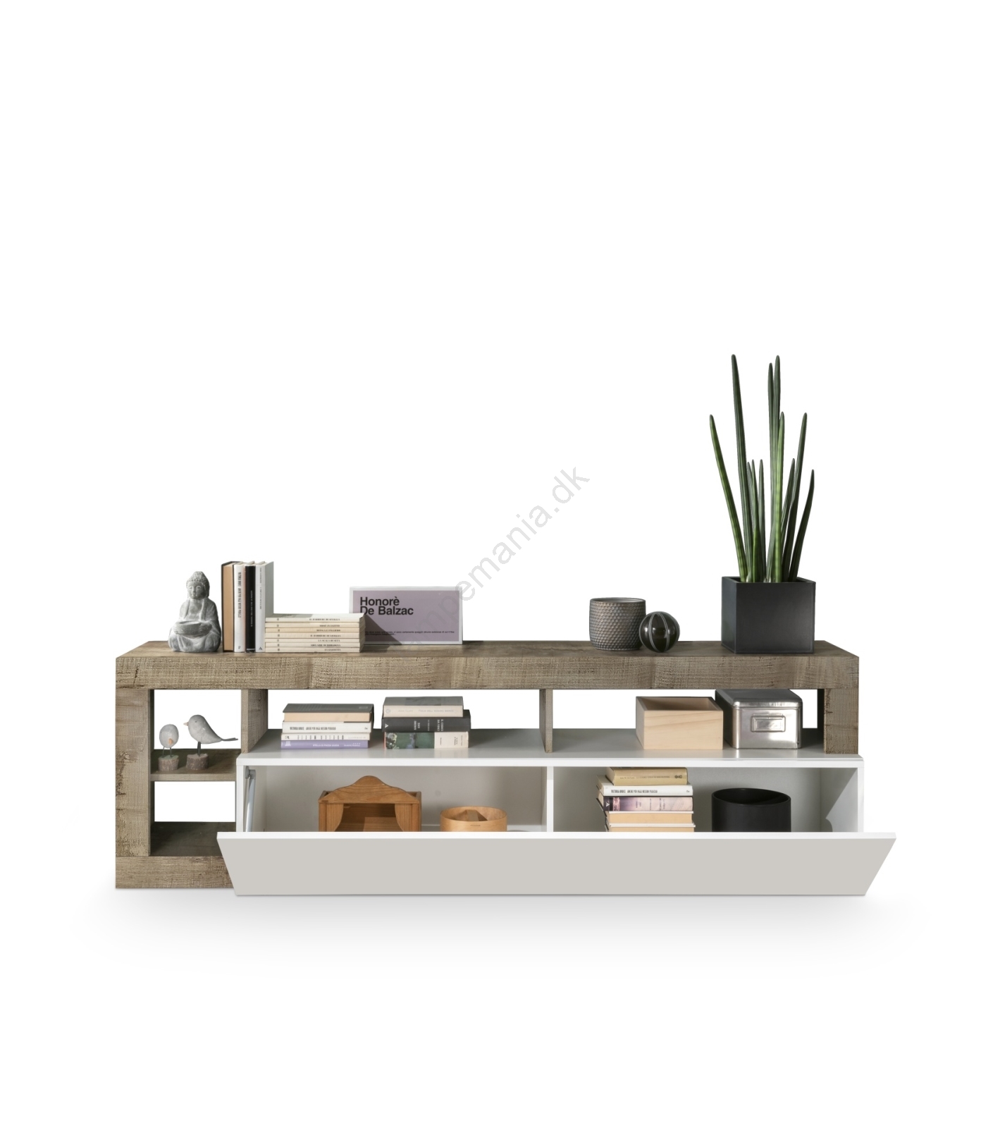 • Nederste opbevaringsrum og åbne hylder giver plads til bøger, dekorationer og husholdningsartikler.