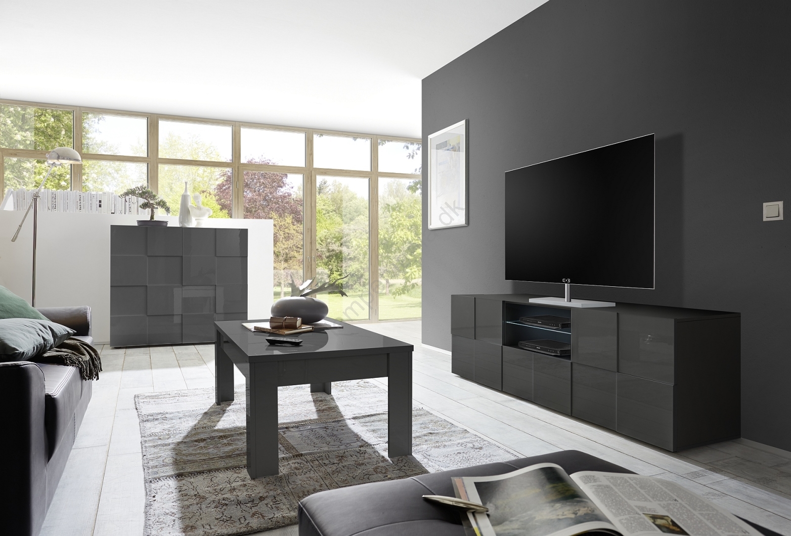 • Takket være den lange rektangulære form er det ideelt under et vægmonteret TV eller som en moderne opbevaringsløsning i stuen.