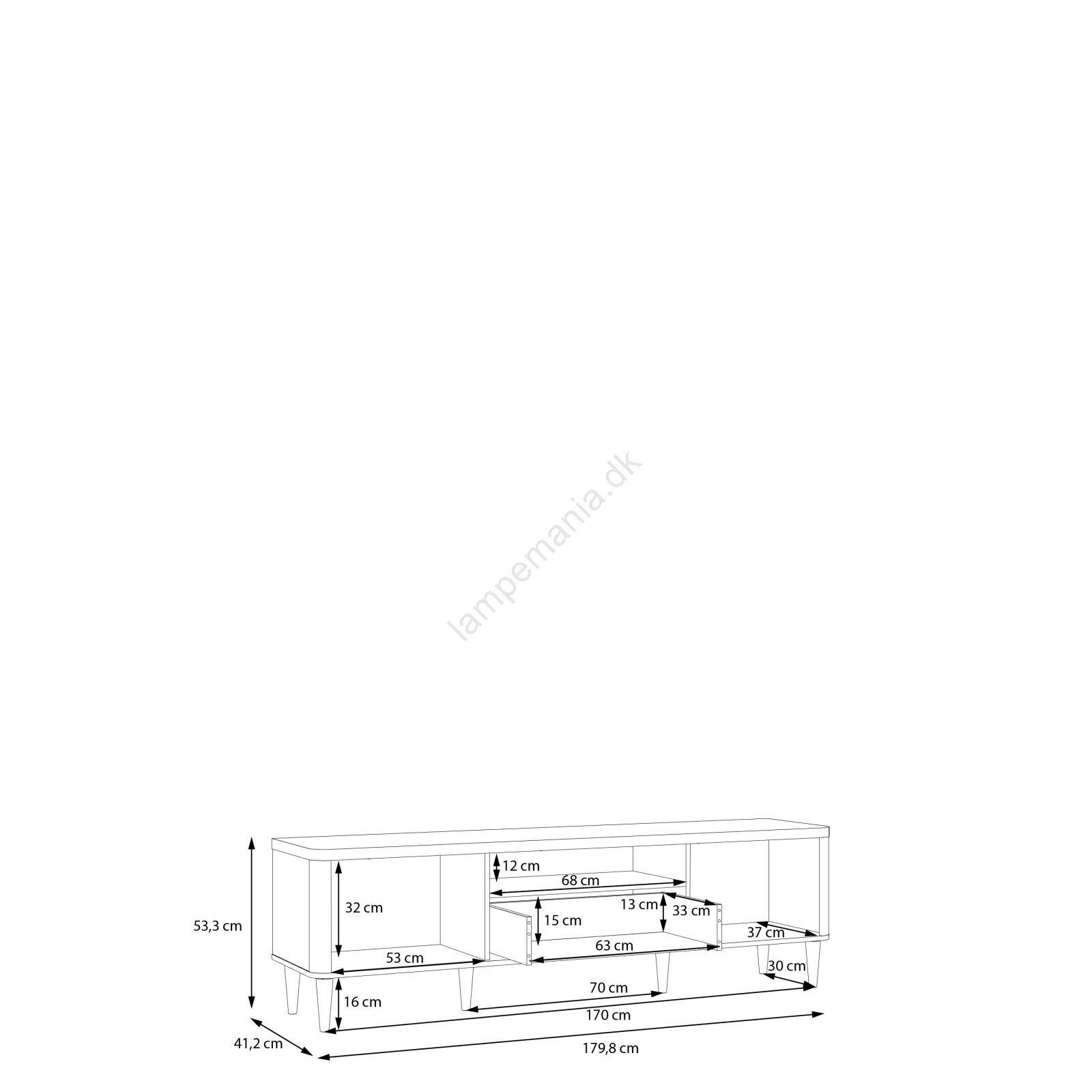 • Med en skuffe og skabe tilbyder det generøs opbevaringsplads til organisering af hverdagens ejendele.