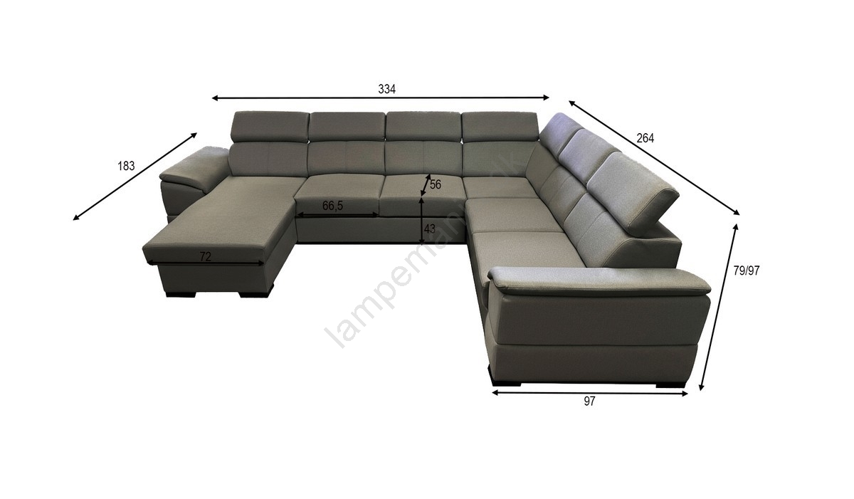 • U-formet sovesofa med vendbart hjørne og opbevaringsrum GRANADA mørkegrå